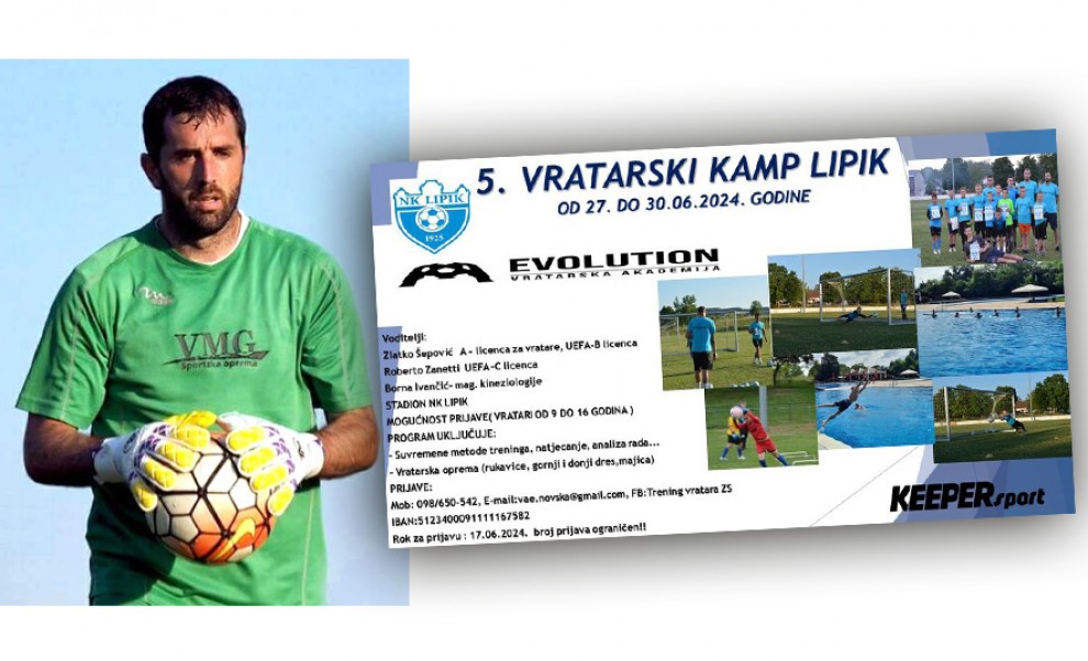 Zanimljiv nogometni kamp specijaliziran za vratare, a pod vodstvom poznatih vratara Zlatka Šepovića i Roberta Zanettija, vlasnika Uefa – C licence te Borne Ivančića, mag. kineziologije, bit će održan od 27. do 30. lipnja na stadionu NK Lipik 1925.