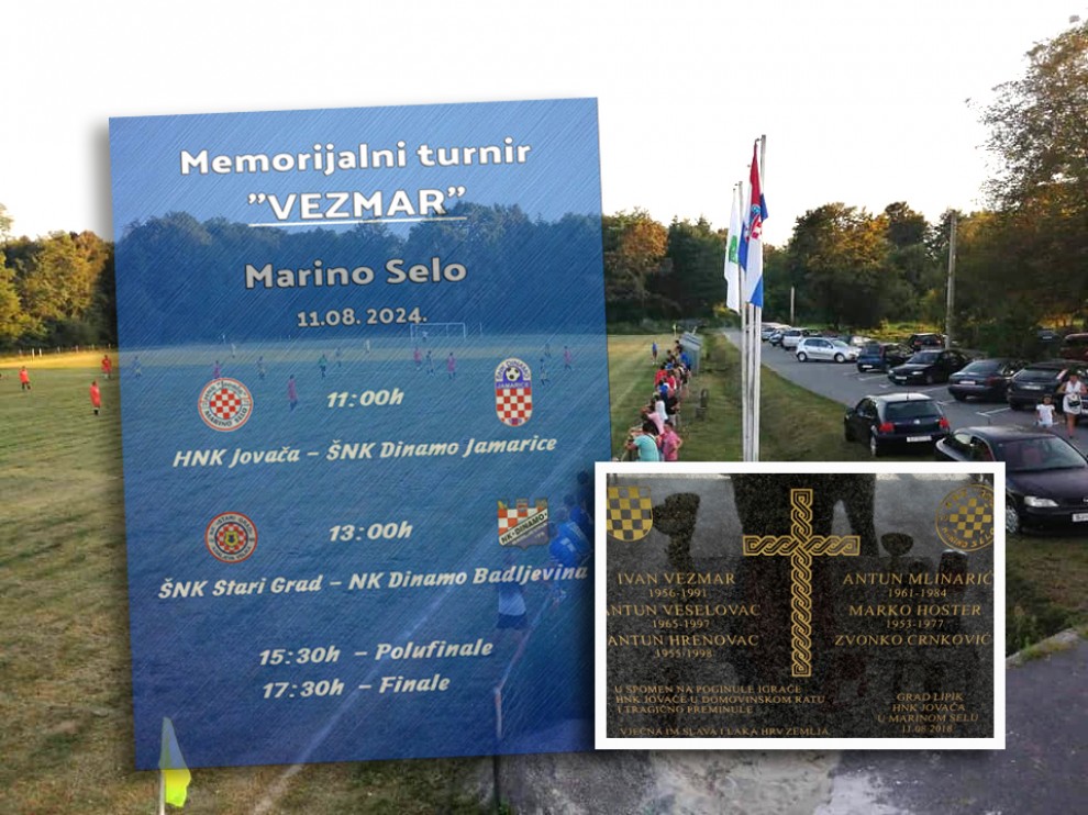 U organizaciji HNK „Jovača“ Marino Selo i pod pokroviteljstvom Grada Lipika 11. kolovoza na nogometnom igralištu u Marinom selu, bit će održan cjelodnevni tradicionalni Memorijalni turnir „VEZMAR“, posvećen Ivanu Vezmaru, Antunu Veselovcu, Antunu Hrenovcu, Antunu Mlinariću, Marku Hosteru i Zvonku Crnkoviću - poginulim igračima HNK „Jovača“, kao i svim stradalnicima Domovinskog rata.