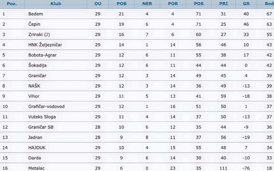 U pretposljednjem 29. kolu MNŽL Slavonije i Baranje Hajduk Pakrac je propustio osigurati svoj status u ligi te je, subotnjim porazom od NAŠK-a, pitanje ostanka u ligi ili ispadanja u županijski rang ostalo otvoreno do samog kraja.