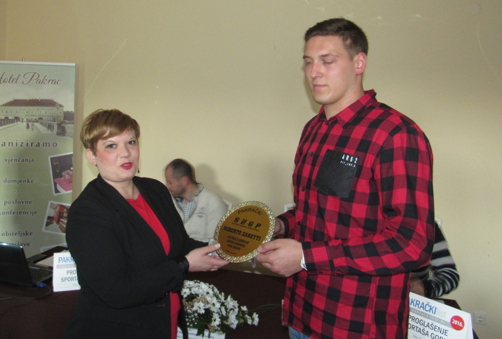Prije samog čina uručenja nagrade najboljem sportašu Grada Pakraca u 2016. godini okupljene predstavnike sportskih klubova te gradonačelnicu Pakraca Anamariju Blažević i predsjednika Gradskog vijeća Zorana Krejčija pozdravio je novinar Pakračkog lista Darko Baronica, pokretač i dugogodišnji nositelj ovog izbora za sportaša godine Grada Pakraca. Potom je na povijest izbora za najboljeg sportaša koji se provodi već 24 godine od 1992. godine podsjetio Duško Kliček te još jednom ponovio sve nagrađene sportaše kroz to vrijeme. Također je upoznao sve s postupkom ovogodišnjeg izbora te naveo kako je bilo prijavljeno petero sportaša u pet različitih sportova. Kuglač Antonio Juranović, moto-crosser Matija Tessari, streličarka Mirela Miletić, ribolovac Dejan Vondrak i nogometaš Roberto Zanetti koji je od peteročlane komisije dobio maksimalnih 25 bodova te tako osvojio najviše bodova od svih sportaša u izboru. Komisiju su činili novinar Dinko Kliček, Sadmir Delihodžić i Denis Relota iz SZGP te predstavnici klubova Marijan Prohaska iz NK Hajduk Pakrac i Tomislav Luksetić iz KK „Slavonski banovac“ Pakrac.