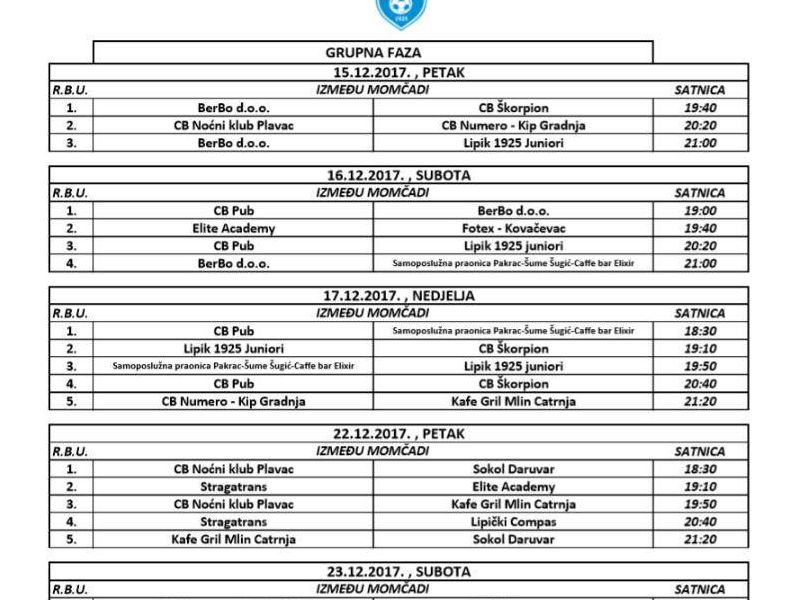 Natjecanje u kategoriji do 10 godina kreće u nedjelju, a u kategoriji do 12 godina prve utakmice se igraju 23. prosinca.