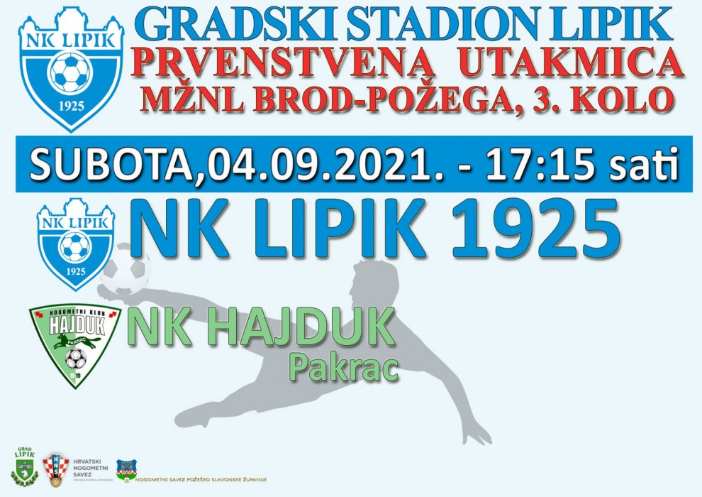 U trećem kolu prvog dijela sezone 2021./2022. NK Lipik 1925. će na svom terenu ugostiti jednog od najvećih rivala, pakrački NK Hajduk. Hajduk je vrlo dobro startao sezonu, u prva dva kola ubilježio je dvije pobjede, prvu u gostovanju kod ekipe NK Slobodnica (2:0) koja se ove sezone priključila ligi te protiv ekipe iz Sikirevaca koju je Hajduk proteklog vikenda na svom terenu pobijedio s 3:1. Hajduk je trenutno na vrhu ljestvice s maksimalnih 6 bodova, a ispred drugoplasirane Požege koja ima isti broj bodova je radi bolje gol razlike.