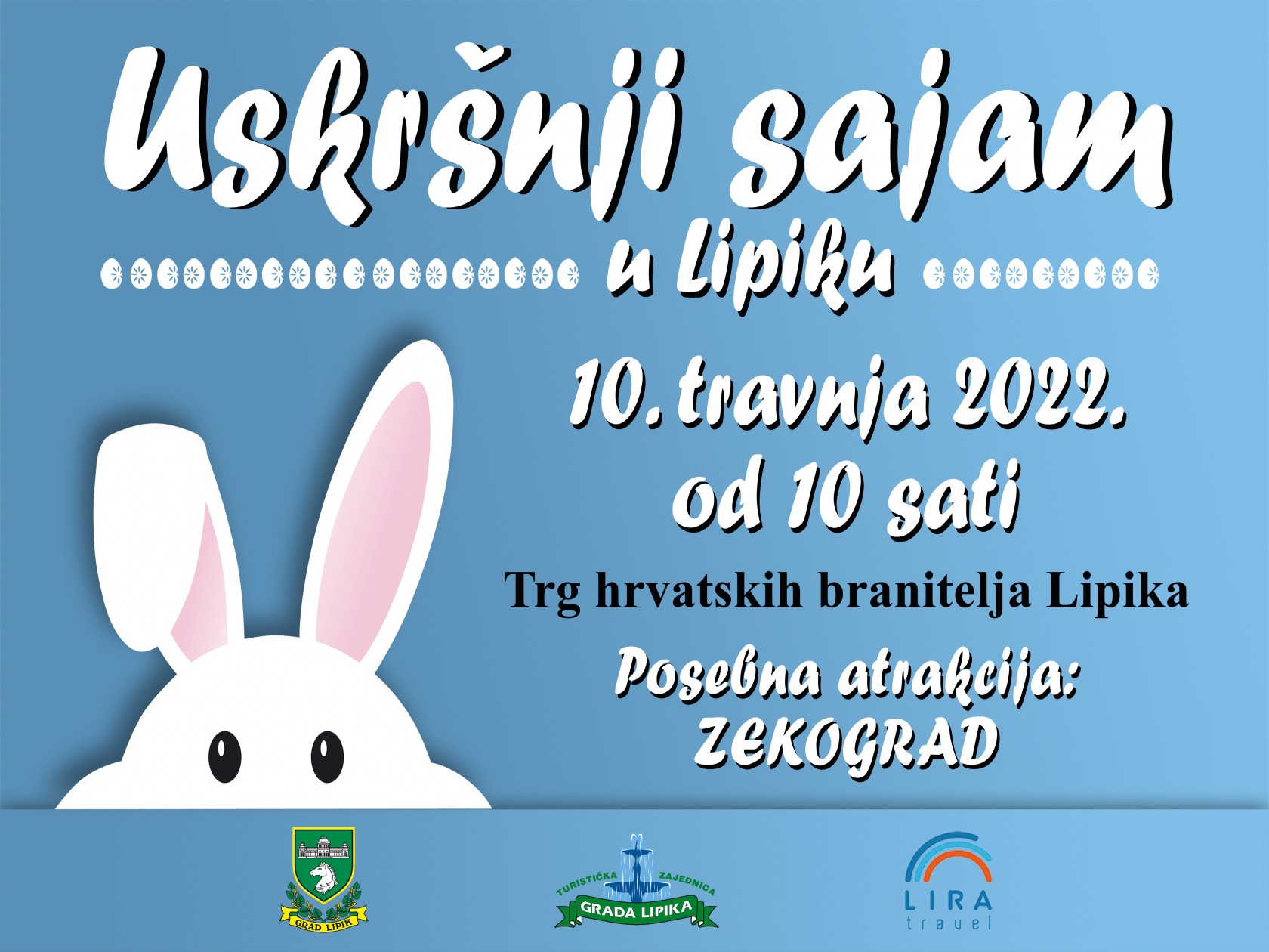 Sve pratitelje pozivamo da dođu u Lipik na Uskršnji sajam i Zekograd u nedjelju 10. travnja, da se odmore i zabave sa svojim obiteljima.