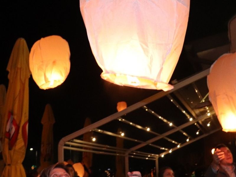 Nakon zabave s animatorima uz dekorativnu rasvjetu u šatoru, djeca su se sa svojim roditeljima okupila vani gdje su puštali lanterne želja koje su blještavo otplovile u posljednju noć odlazeće godine noseći želje koje će se u novoj, nadajmo se, svima ostvariti.