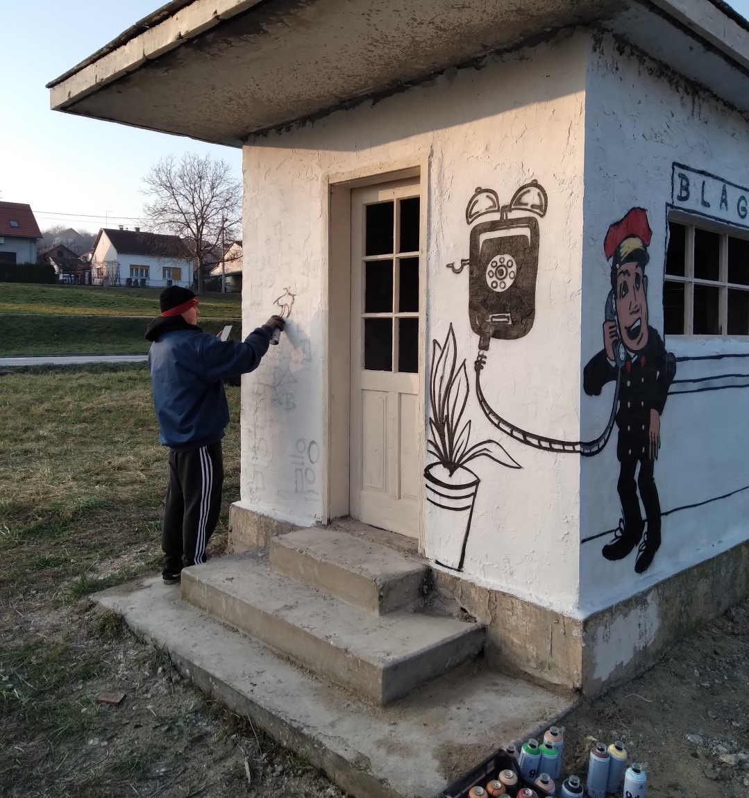 Prema riječima Tomislava Novinca, predsjednika Udruge djece branitelja Domovinskog rata Pakrac – Lipik, članovi Udruge su uz suradnju Savjeta mladih Grada Pakraca i donacijom HŽ-a pripremili teren oko kućice i očistili zidove kako bi bili spremni za oslikavanje. Profesionalci iz Legrada su volonterski oslikali sva četiri zida kućice.