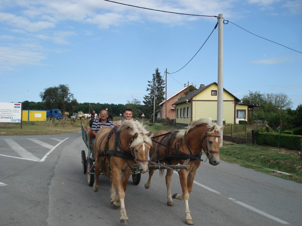 Nakon stotinjak metara fijakeri su skrenuli u dvorište jedne kuće u Gaju kako bi konji pošli na zasluženi odmor. Tamo je vlasnik konja Robert Valčičak rekao kako je s prijateljima provozao fijakere kroz okolna sela, od Poljane na zapadu do Kukunjevca na istoku. U prvom fijakeru kojim se vozio Robert Valčičak upregnuli su austrijske haflingere, a u drugom su upregnuli hrvatske hladnokrvnjake.