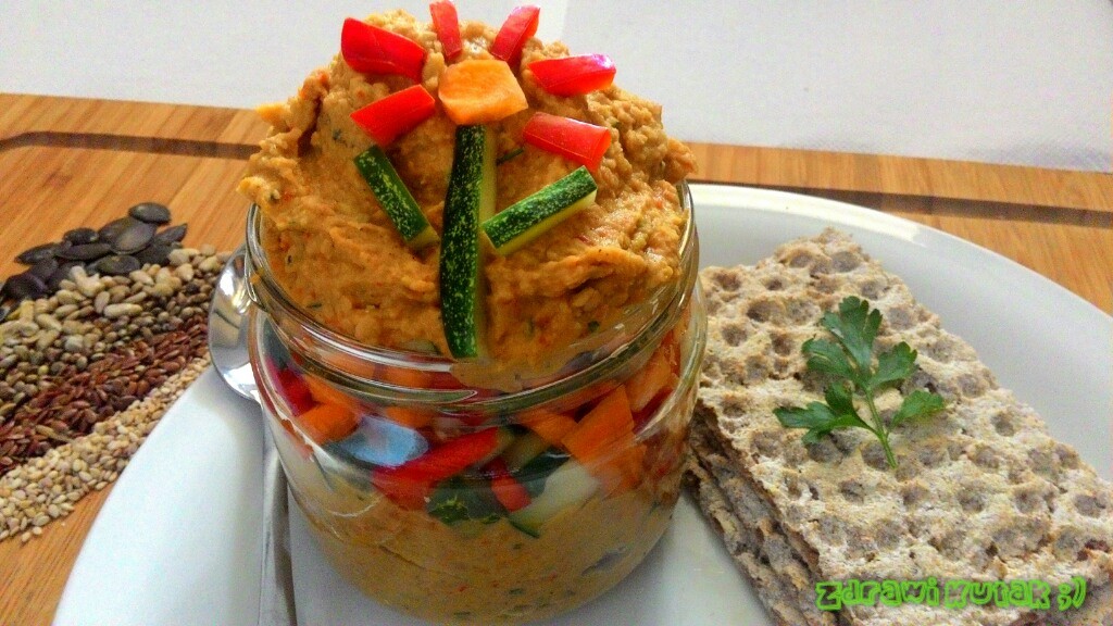 Kako te lanene krekere ne bi žuljali prazne... hehe, znam da niste, ali evo ideje, koju sam Vam pripremio za ovaj tjedan, a to je prefini biljni namaz od graha i slanutka, uz dodatak povrća, raznih sjemenki te svježih i suhih začina. Jednom riječju, savršenstvo biljnog svijeta mazivo na neki zdravi kruh ili krekere... mljac. Znate i sami da su industrijski namazi nakrcani raznim sumljivim dodacima i E brojevima, pa čak i ti biljnog porijekla (izuzev nekih pravih pravih namaza, u dućanima zdrave prehrane, koji koštaju kao suho zlato) uvijek nakrcani nekim dodatkom, koji Vas bode u oči, ali budući da uzimate biljni namaz, ignorirate taj sastojak i kupujete ga. A što je najgore, za dosta novaca, kupujete količinu koja se može namazati na 4 šnite kruha, onako poštene, kako spada. Zato taj novac radije uložite u pojedine namirnice, jer budete za sličnu količinu love, napravili 3 do 4 puta više svojega domaćeg namaza, koji će vam biti toliko fin, da se ne morate opće brinuti za rok trajanja jer ga budete smazali u roku par dana.