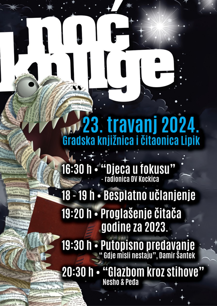 Noć knjige 2024. obećava obilje kulturnih sadržaja i priliku za susretanje s književnošću na različitim razinama, potičući zajednicu na promišljanje, učenje i druženje kroz riječ i umjetnost.