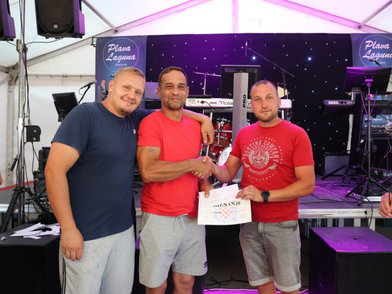 Prvo mjesto osvojila je ekipa Antuna Strmote, koja je time osvojila i nagradu u obliku 60 % povrata kotizacije te 10 ulaznica za Narodne kupke. Drugoplasirana ekipa Dobrovački Šogori nagrađena je vožnjom kočijom i 30 % povrata kotizacije, dok je treće mjesto pripalo ekipi HNK Dobrovac, koja je osvojila 10 % kotizacije i piće na šanku. U natjecanju su sudjelovale i ekipe Društva Mađara iz Pakraca, Cekeri (čiji članovi dolaze iz Pakraca i okolice) te lokalna ekipa Tri gumena ježa iz Rijeke.