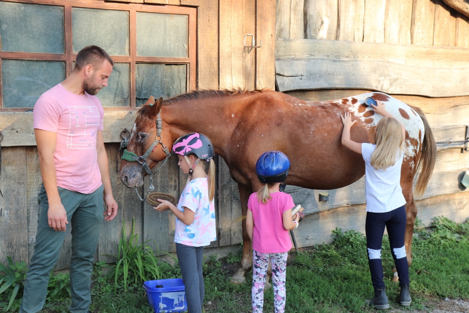 Prva radionica, 3. rujna, bila je posvećena upoznavanju s konjima i konjičkom opremom. Mali polaznici učili su pravila ponašanja u blizini konja te isprobavali pribor za njegu i održavanje zdravlja ovih plemenitih životinja. Najviše ih je razveselila mogućnost da i sami sudjeluju u brizi za konje.