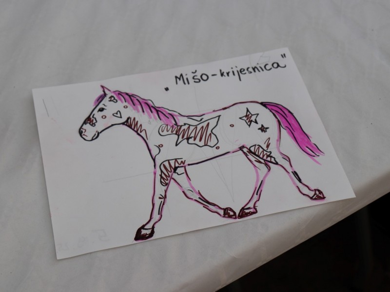 Trećeg dana, pod vodstvom Ene Jelinek, održana je radionica crtanja konja. Djeca su kroz jednostavne oblike i upute svladavala tehnike crtanja te ponosno ponijela svoje radove kući, nakon što su se okušala i u jahanju pod pratnjom Mije i Lidije.