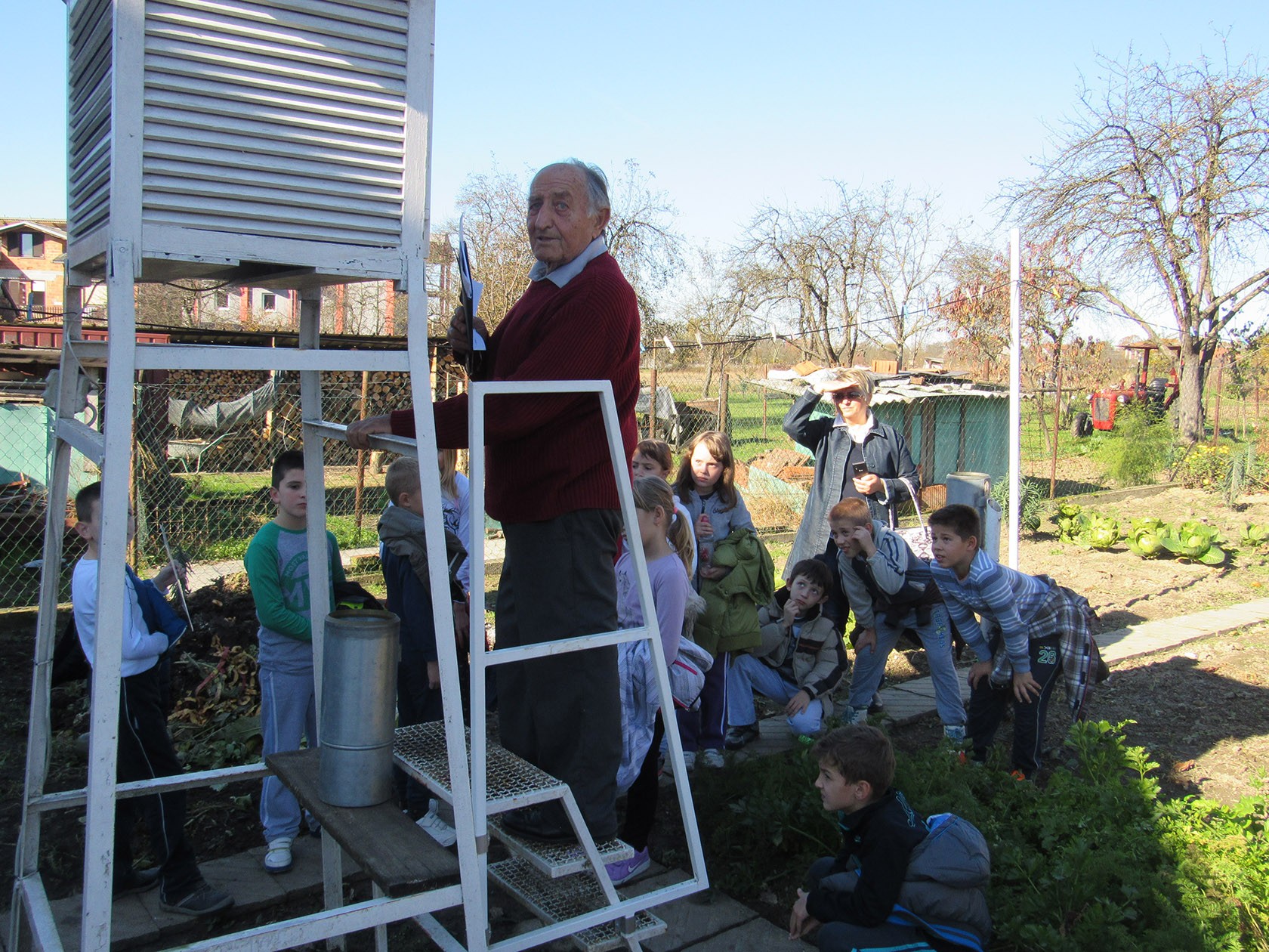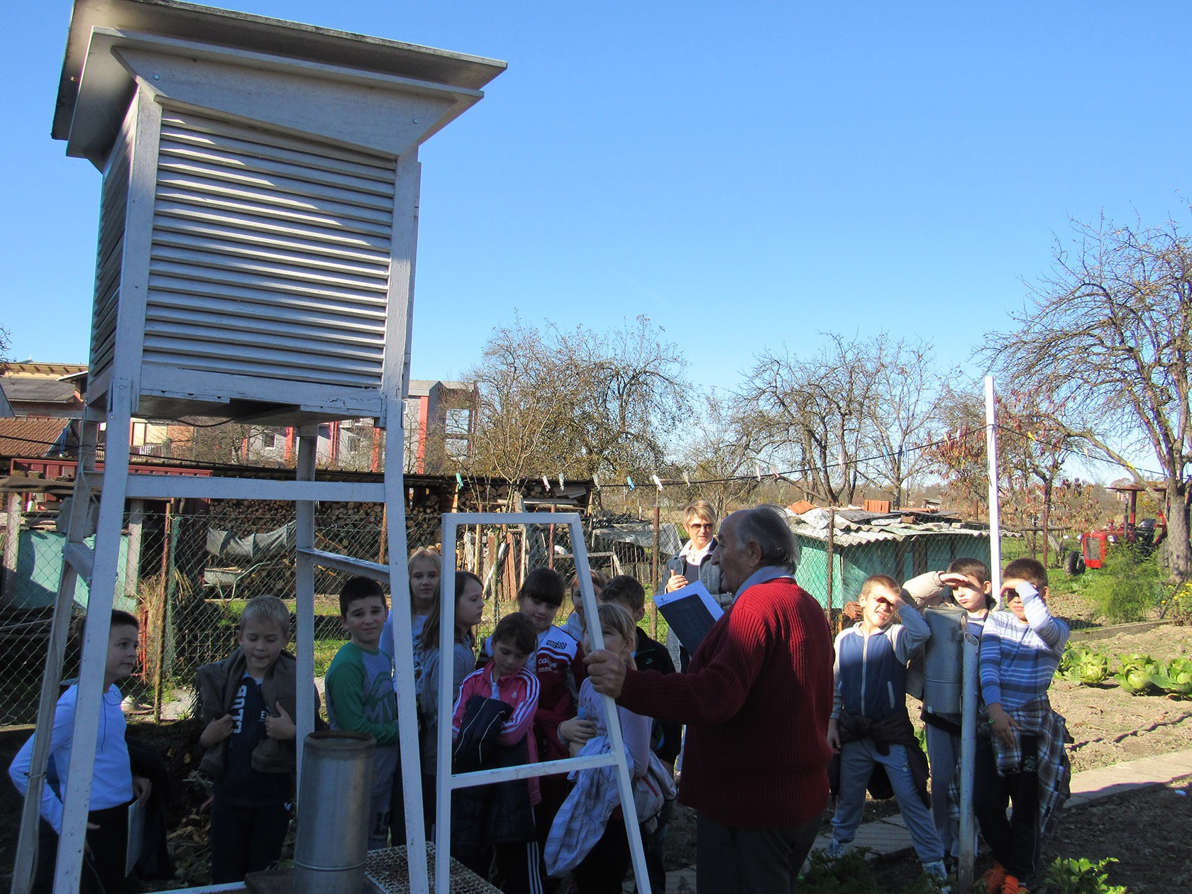 Lipički vremenski motritelj Josip Benković upoznao je osnovnoškolce s poslom koji obavlja svakog dana, od jutra do zalaska sunca za Državni hidrometeorološki zavod Hrvatske na meteorološkoj postaji Lipik, jednoj od 109 takvih u Hrvatskoj. Nakon što je osnovnoškolcima pokazao prvi uređaj, onaj za određivanje jačine vjetra, svi su nastavili prema meteorološkoj kućici gdje su učenici saznali koji se sve mjerni instrumenti nalaze unutar i pokraj kućice poput termometra, barometra i dr.