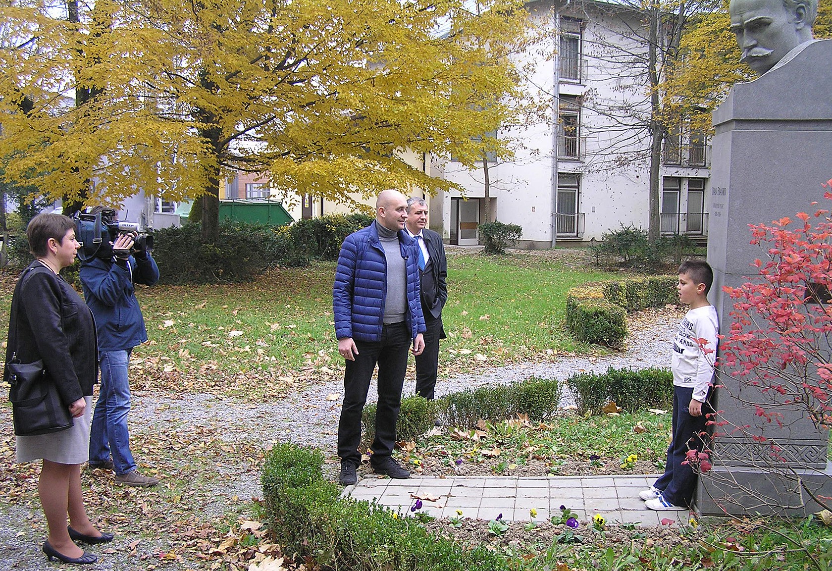 Devetogodišnji Kristian Matijević otpjevao je za novinare ukrajinsku nacionalnu himnu pored spomenika Ivanu Franku u gradskom parku.