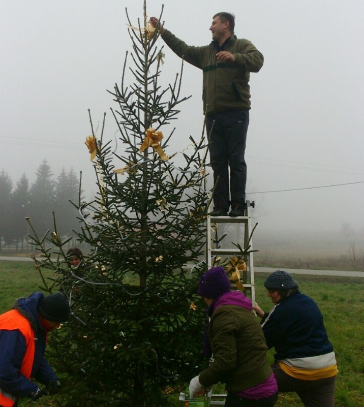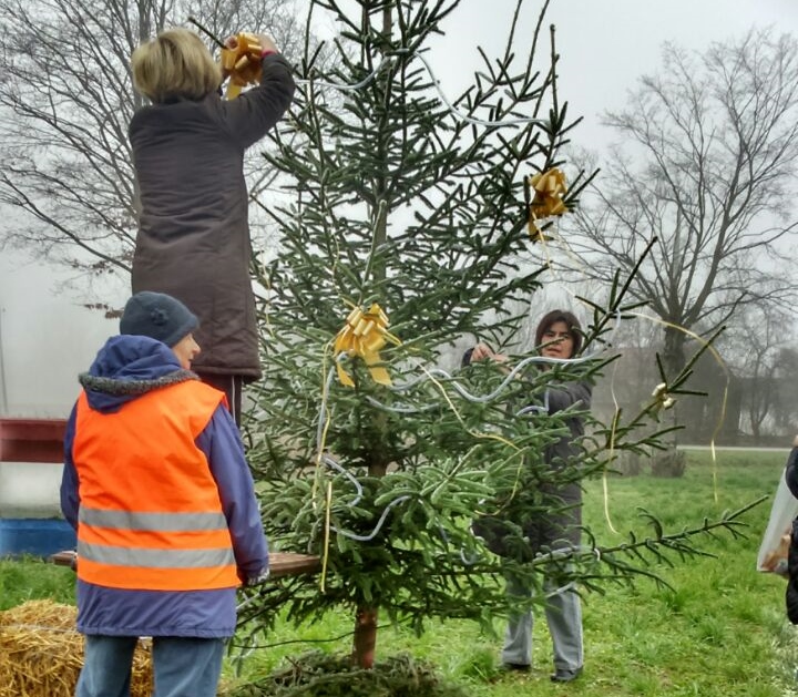 Ukrašavanje božićnog drvca u Gaju obišao je župnik vlč. Stjepan Škvorc pa ova zajednička akcija i ukrašeno drvce imaju i Božji blagoslov.