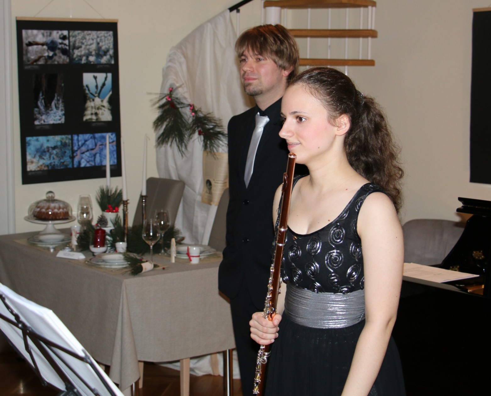 Protagonisti koncerta u svojoj interpretaciji publici su približili glazbena djela nastala u razdoblju od vremena baroka, preko bečke klasike i romantizma do početka 20. stoljeća. Mlada pijanistica i flautistica Ana Dadić studentica je četvrte godine klavira u klasi izv. prof. Rubena Dalibaltayana i treće godine flaute u klasi izv. prof. Renate Penezić na Muzičkoj akademiji u Zagrebu, a uz glazbeno obrazovanje i usavršavanje održala je brojne nastupe s oba instrumenta solo ili u komornim sastavima te dobila brojne nagrade. Pijanist Domagoj Gušćić završio je studij klavira na Muzičkoj akademiji u Zagrebu u klasi izv. prof. Đure Tikvice, a usavršavao je glazbeno umijeće kod još uglednih glazbenih pedagoga. U glazbenoj karijeri održao je nastupe međunarodnim natjecanjima u više zemalja svijeta i dobio nekoliko vrijednih nagrada.