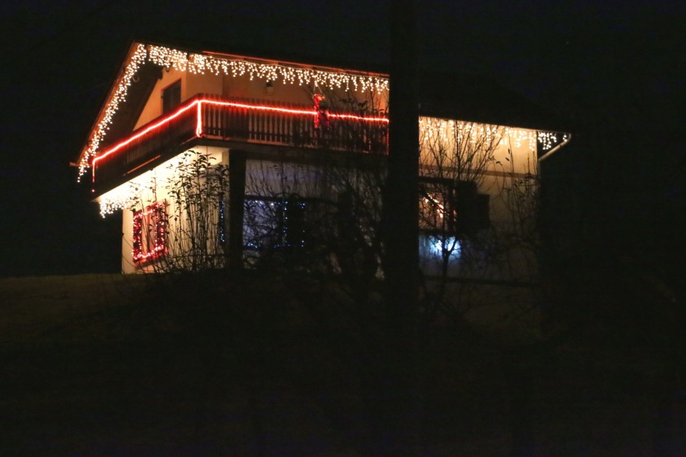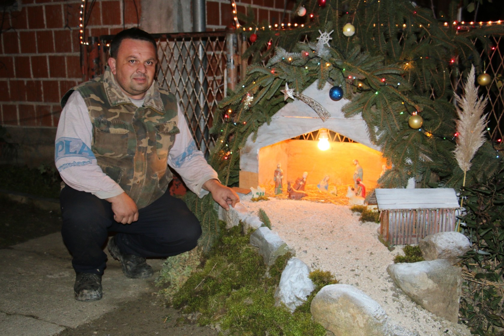 Pred jednom od kuća zatekli smo Dalibora Adžijevića koji je s puno pažnje ukrasio okućnicu kako bi razveselio svoju djecu u ove predbožićne dane mira, radosti i ljudske topline. Uz osvjetljenje okućnice lampicama, ispred ulaza u kuću postavio je jaslice, a iznad njih okitio božićno drvce.
