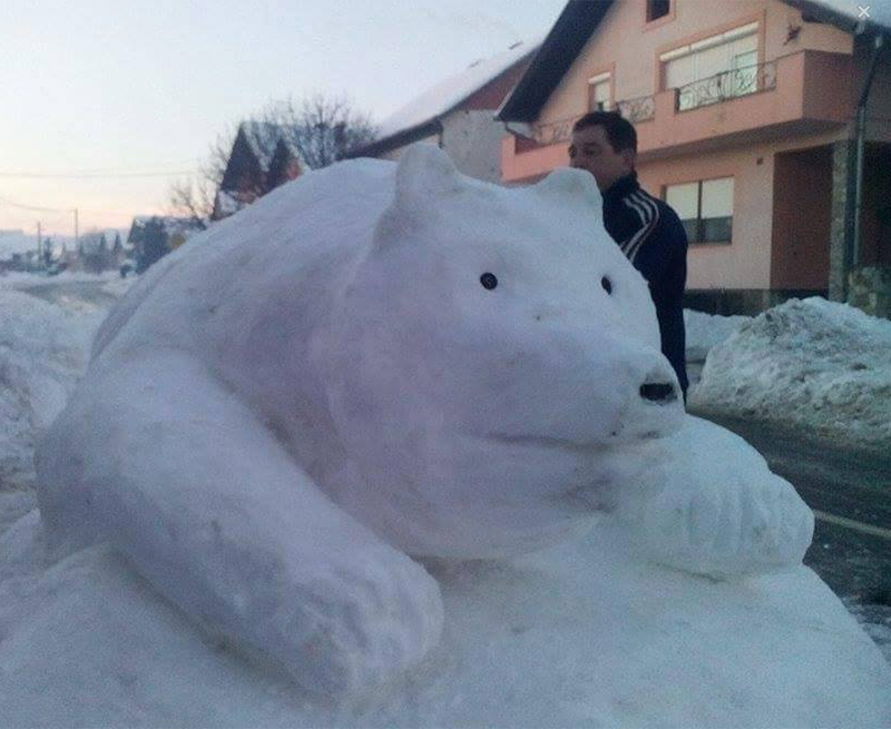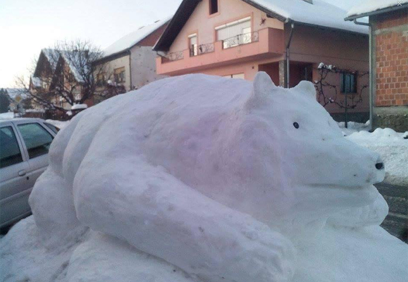 A da i u Prekopakri ima kreativaca koji su nakon čišćenja snijega ispred svojih okućnica odlučili s izradom snježnih figura obradovati mališane potvrđuju fotografije figure polarnog medvjeda koje nam je poslala naša čitateljica iz Prekopakre. Na hladnom zraku tijekom izrade figure polarnog mede zagrijali su se Valentin Vidmanić, Matija Nožarić te Oskar i Arijana Arland.