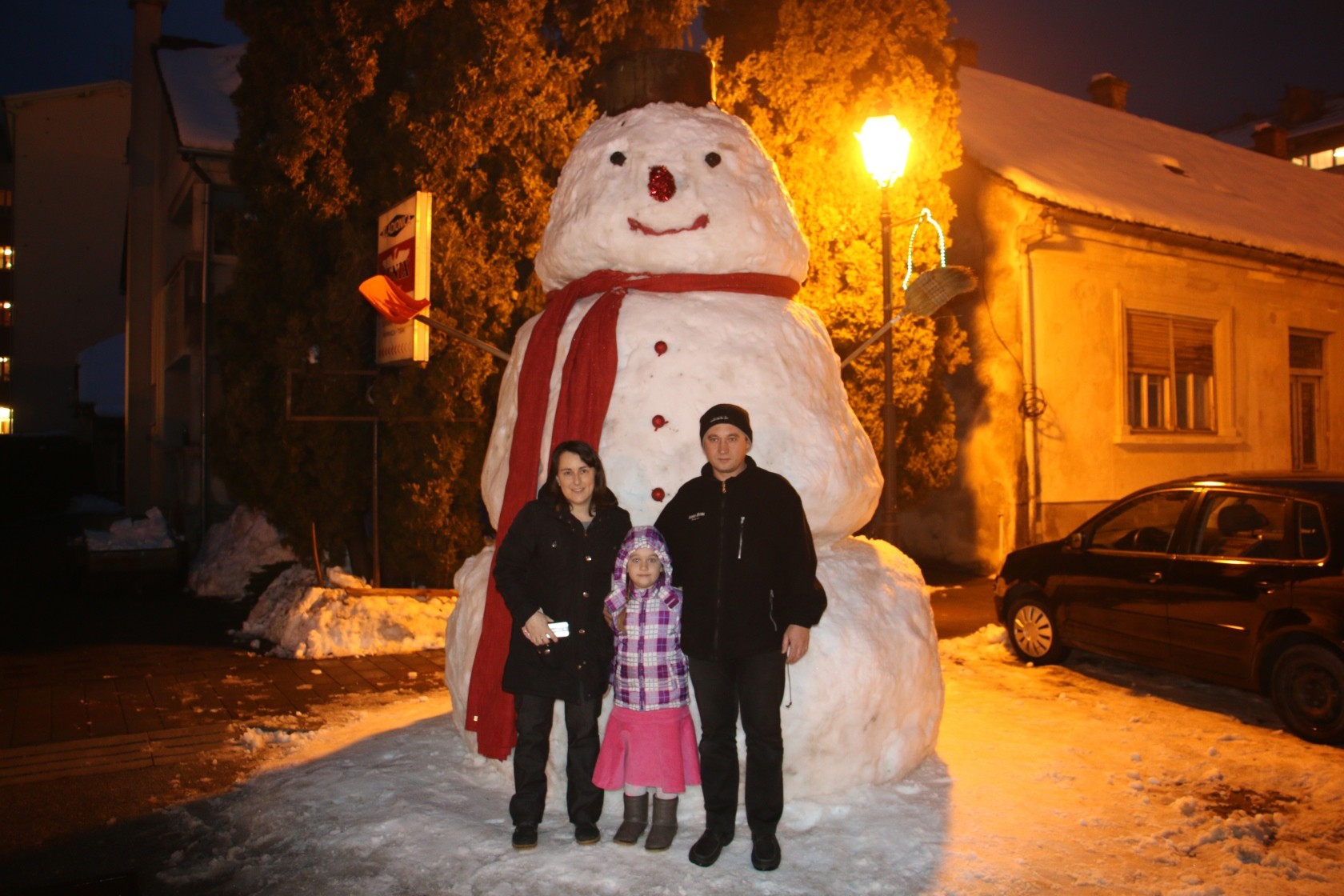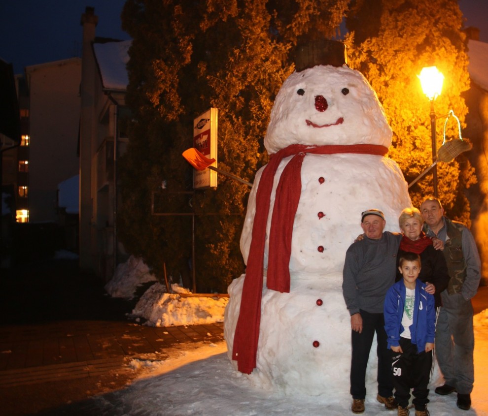 Kad je bijeli gost s crvenim nosom, šalom i dugmadi na parkiralištu ispred Tomine kuće stigao već su naišli i prvi prolaznici koji su se poželjeli fotografirati sa snjegovićem.