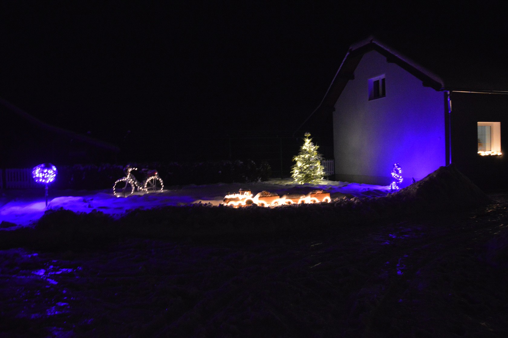 Drugu nagradu je zaslužila obitelj Natalije i Tibora Nagy iz Marinog sela. Oni ukrašavaju okućnicu uz stručno vodstvo sina Alessandra, najstarijeg sina sedmeročlane obitelji. Uz puno ruku, nije ni čudno da se njihova okućnica našla na dobitnom mjestu. Ukrasili su više od prošle godine, uz malo drugačiji stil te su sa „svjetlećom zmijom“ još ukrasili i ivičnjak na širem dvorištu. Možda je baš to bio pogodak da uđu u uži izbor. Napravili su i velikog snjegovića, a ukrašavaju već 17 godina. Ove godine su na kupovinu lampica potrošili samo 200 kuna više od prošle godine.