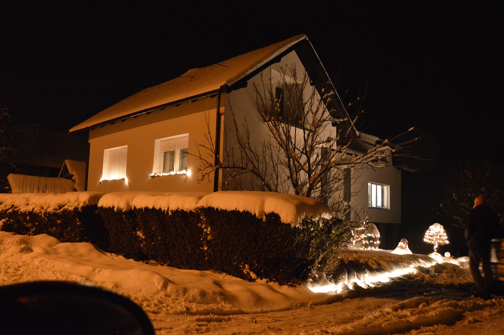 Prva nagrade je otišla u Poljanu u obitelj Zdravka Paukovca. Mama Jasna i kćer Valentina su najzaslužniji za ukrašavanje obiteljske kuće i okućnice lampicama uz tehničku podršku cijele obitelji. Ove godine je povećan broj lampica za oko 500 kuna, tako da su ove godine upotrijebili ukupno oko 2.500 lampica, a ukrasili su i bunar i ljetnu kuhinju, ali i bicikli i vlakić. Počeli su ukrašavati prije 10 godina, a lampice kupuju samo kod domaćih trgovaca, ne i preko interneta.