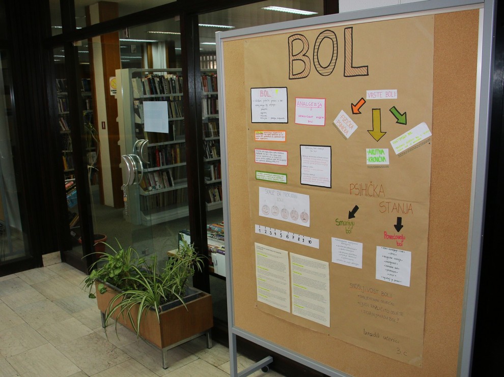 „Radovi učenika nastali su kao drugačiji sažetak nastavnog gradiva iz Zdravstvene psihologije iz područja "Bol". Učenici su prikazali sve osnovne informacije koje su učili o boli tijekom prosinca, ali i sve ono što su samostalno pronašli kao dobre primjere ili dodatne informacije o boli.“, rekla nam je profesorica psihologija Nataša Major pod čijim vodstvom su učenici 3.c razreda izradili postavljene panoe. Učenici su obrađeno nastavno gradivo o boli tematski izložili u dva dijela. U prvom dijelu izložili su osnovne informacije o boli, a u drugom dijelu prezentirali su različite načine suzbijanja boli s naglaskom na psihološke postupke.