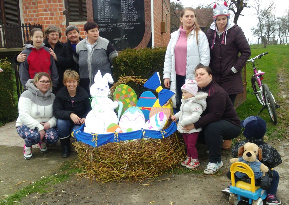 Vrijedne ruke članica udruge izradile su pisanice i uskrsnog zeca od stiropora te su ih postavili u gnijezdo pripremljeno od prirodnih materijala. Cijelo vrijeme dok su izrađivali ukrase zabavljali su ih djeca koja su se najviše obradovala kad je posao završen.