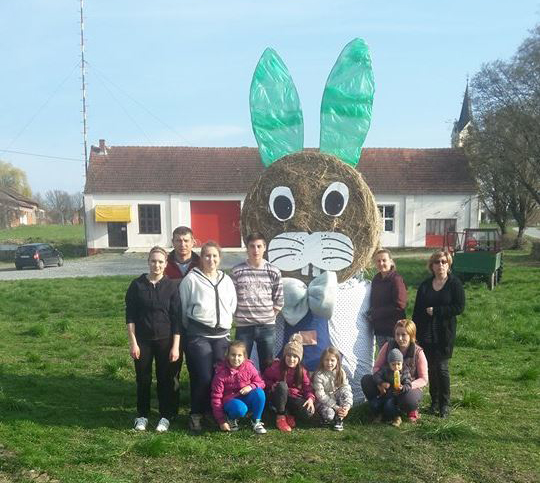 Preko dva metra visoki uskrsni zec iz Gaja djelo je vrijednih članica Udruge žena Gaja, a izradile su ga od dviju bala sijena postavljenih jedna na drugu na koje su dodale uši i druge dodatke. Članicama udruge pri tome je pomagao predsjednik MO Gaj Ivica Stepić, a pridružili su im se djeca i mladež iz naselja koje je veliki uskrsni zec najviše obradovao.