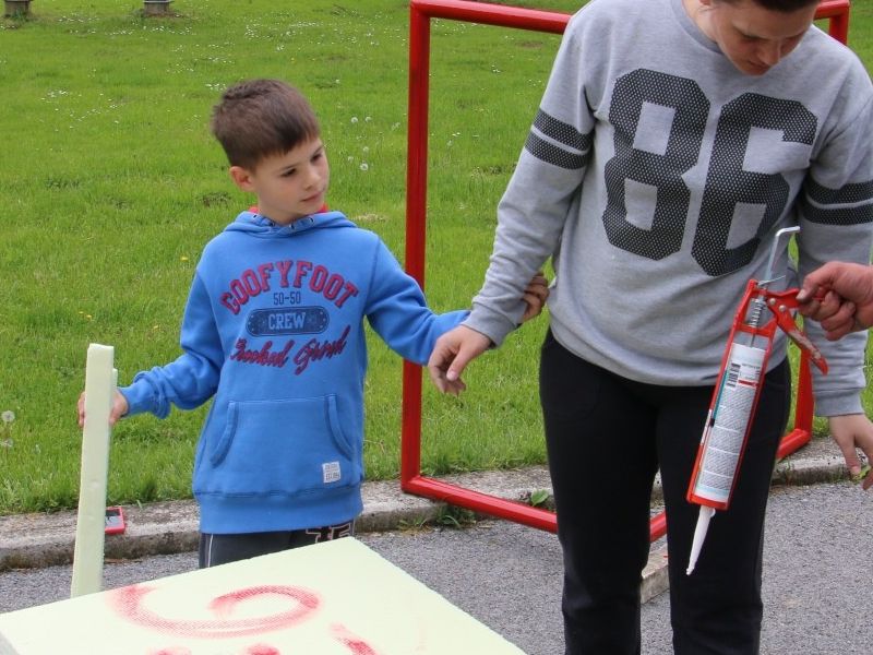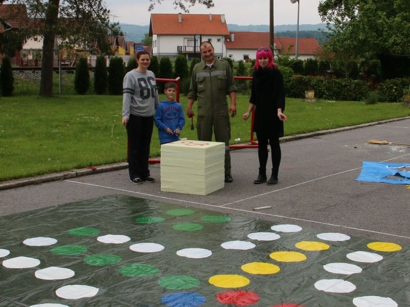 Marica Melić iz Koordinacijskog odbora akcije "Grad Lipik-Prijatelj djece", predsjednica Mažoretkinja Grada Lipika Manuela Lipušić i zapovjednik DVD Lipik Tomislav Stokić proveli su prijepodne 30. travnja u dvorištu Vatrogasnog doma u Lipiku izrađujući materijale za dječje društvene igre koje će posjetitelji igrati iduće nedjelje, 8. svibnja, u lipičkom parku tijekom 6. "Sajma cvijeća u Lipiku".