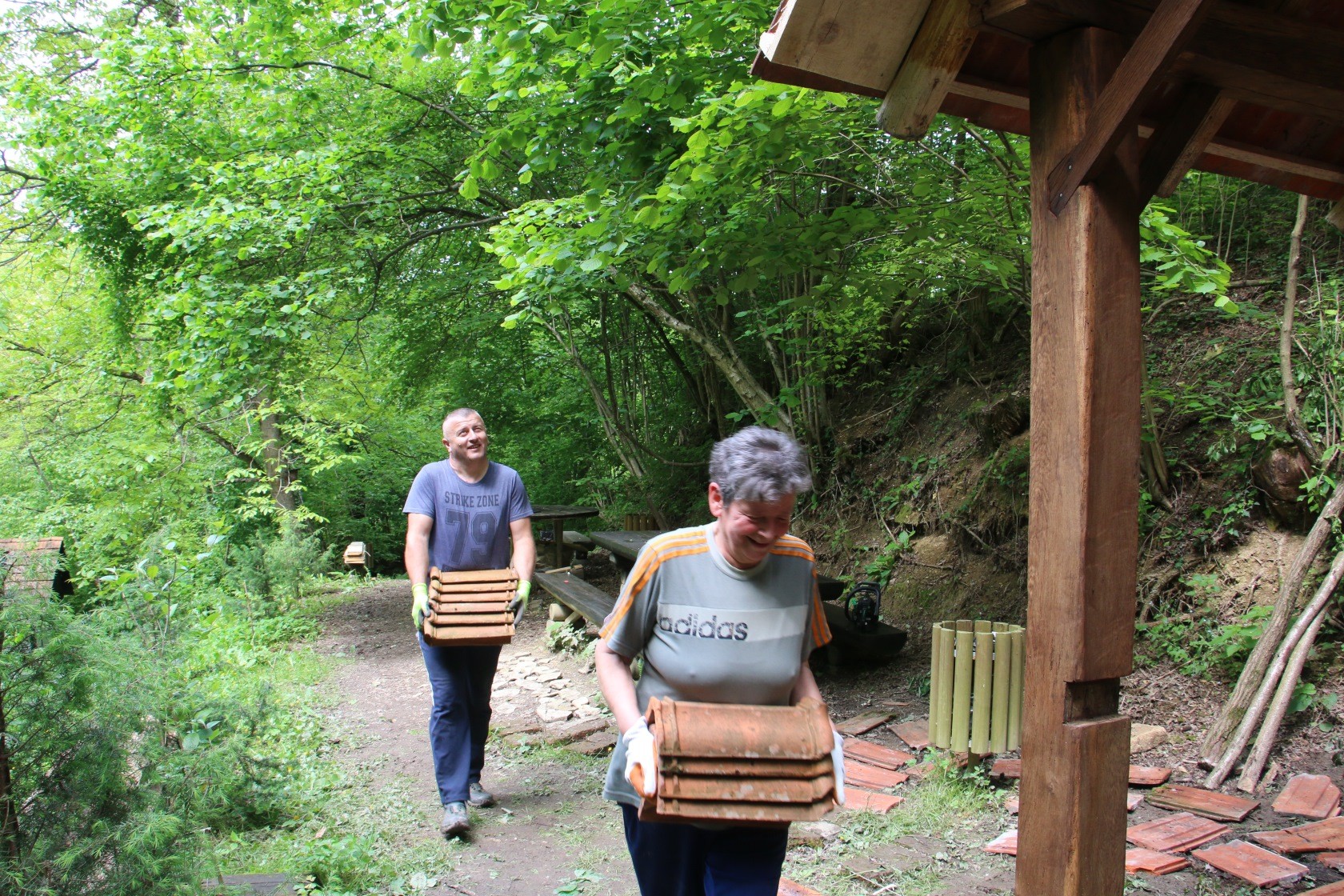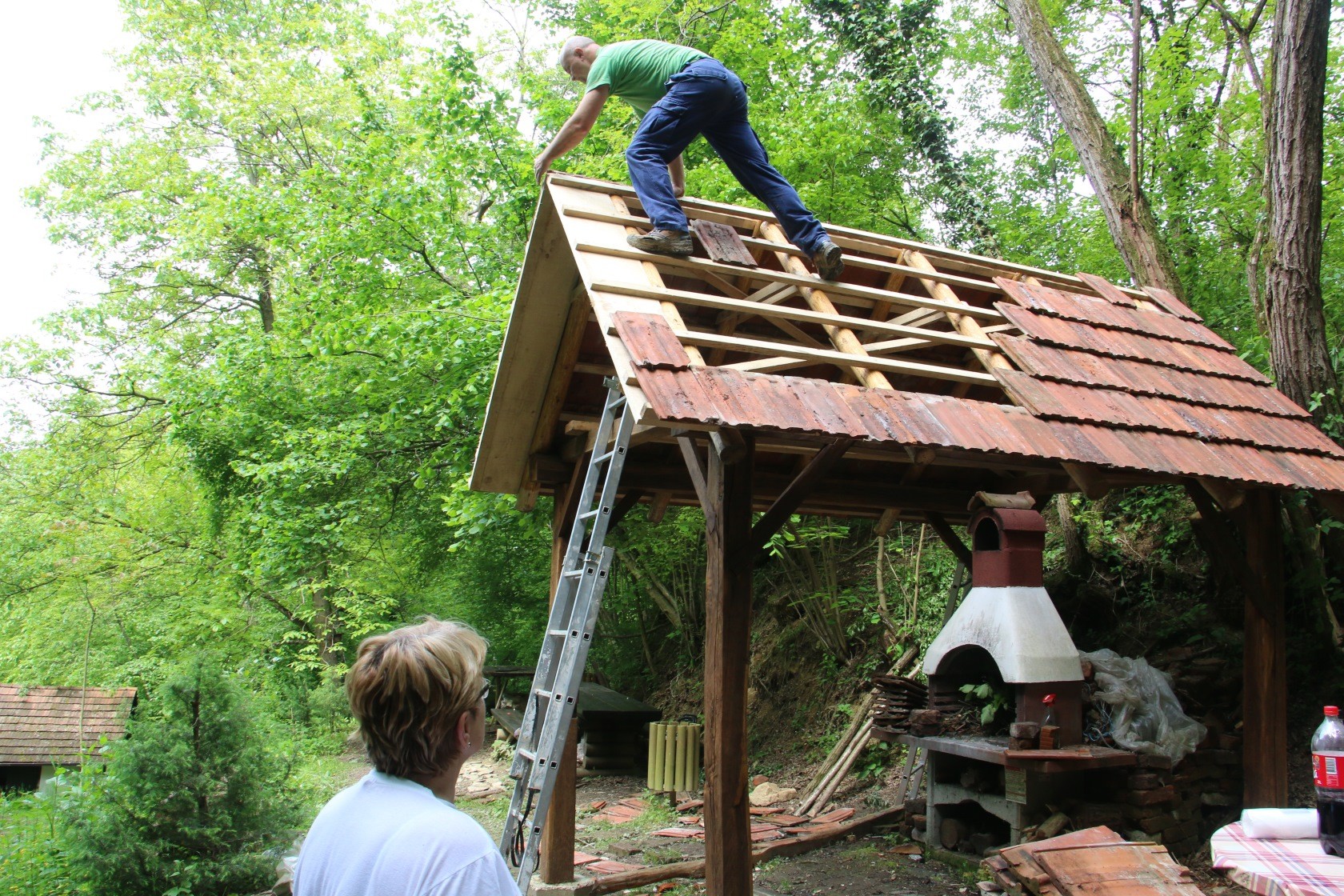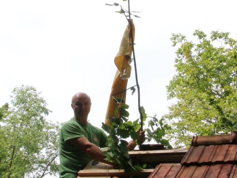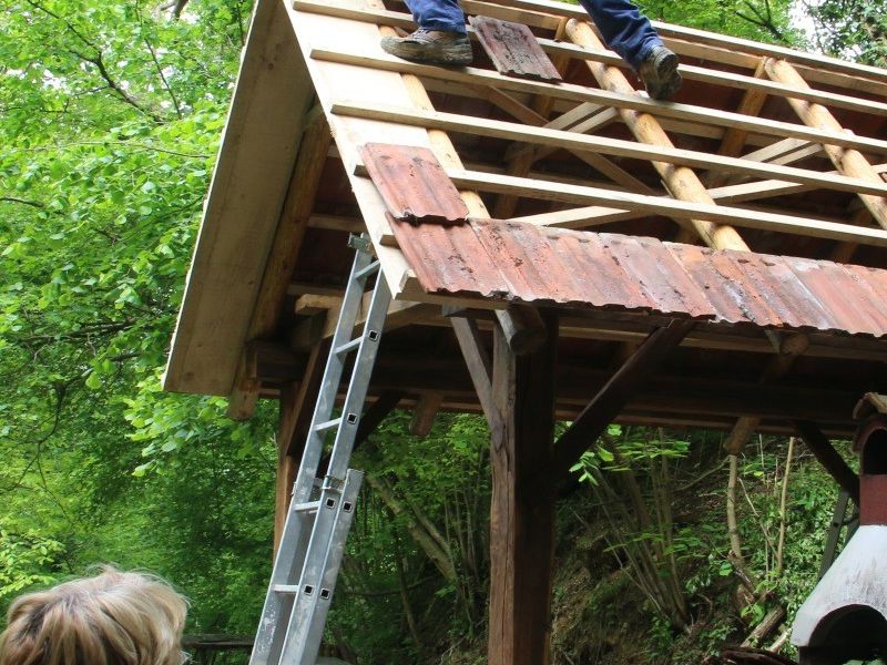 Izgradnju nove nadstrešnice vodile su majstorske ruke Željka Tomaševića i Drage Kuruca, a tijekom trajanja radova uključeno je bilo više od deset drugih članova društva i prijatelja. Prije postavljanja zadnjeg crijepa i kaplaja, po običaju starih majstora, na vrh krova postavljena je zelena grana s privezanim ručnikom i bocom rakije kako bi se označilo da je objekt stavljen pod krov.