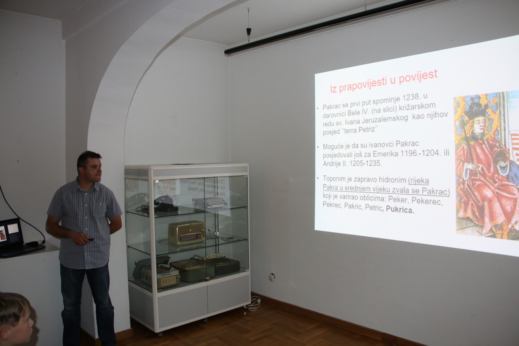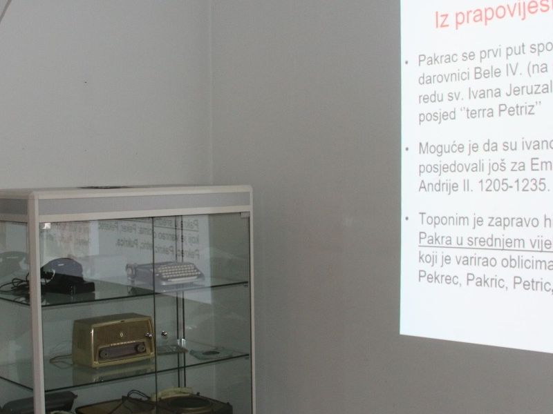 Profesor povijesti u Srednoj školi „Pakrac“ Branko Križan poveo je okupljene na putovanje u najraniju prošlost područja na kojem je kasnije izrastao Pakrac te kroz sva vremenska razdoblja povijesti do najnovije povijesti i događaja iz vremena Domovinskog rata na području Pakraca i Lipika. Dio predavanja prof. Križan posvetio je staroj utvrdi Pakrac koju su u srednjem vijeku izgradili Templari, a zatim preuzeli Ivanovci u kojoj se jedno vrijeme nalazila kovnica „banskog denara“ odnosno slavonskog banovca. Zanimljivu činjenicu iznio je prof. Križan kako se ta stara srednjovjekovna utvrda koja je imala sedam visokih kula rušila u razdoblju od 100 godina. Rušenje je započelo 1860-tih, a završeno je 1960. godine kad je srušena posljednja preostala kula. Također je zanimljiva povijesna činjenica kako je vlasnik pakračke utvrde za vrijeme turskih osvajanja bio Nikola Šubić-Zrinski. U pismu Habsburškom caru, Nikola Šubić Zrinski naveo je kako je postalo preskupo braniti utvrdu, a ne može se uništiti i srušiti jer je predobro građena. Nakon što je srušena posljednja kula 1960. godine u sljedećih tridesetak godina u Pakracu je niknulo mnogo modernih zgrada koje su doslovno promijenile vizure grada.
