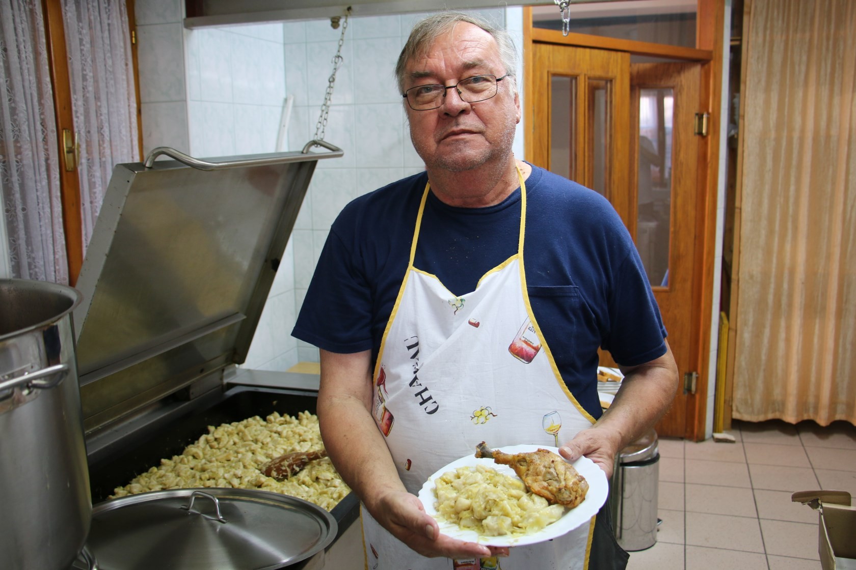 Tijekom sajma saznali smo i kako se pripremaju te što sve ide u knedlike. Prvo se skuha krumpir, dakako oguljeni, koji se izriba na trenicu. U smjesu naribanog kuhanog krumpira dodaju se jaja, brašno, sol i masnoća(margarin ili ulje, kako kome paše). Ta smjesa se zamjesi i oblikuje u dugački valjušak koji se zatim reže na manje komadiće. Ti komadiće se kuhaju u vrućoj vodi s dodatkom soli. Posebno se dinsta kupus na malo masnoće, a kad su knedlike kuhane ocijede se i isperu te stave na dinstani kupus. Knedlike za večeru nakon sajma i kulturnog-umjetničkog programa pripremao je ovaj put Zlatko Grafina.
