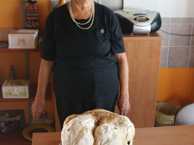 Zlata Kranjčić, umirovljenica iz Lipika, na redovito tjedno druženje s drugim umirovljenicima u prostoru Dnevnog boravka za starije osobe u lipičkom Topoliku 31. kolovoza ponijela je ogromnu puharu koju je nedavno pronašla uz svoj vrt što se nalazi nedaleko od nogometnog igrališta u Lipiku.