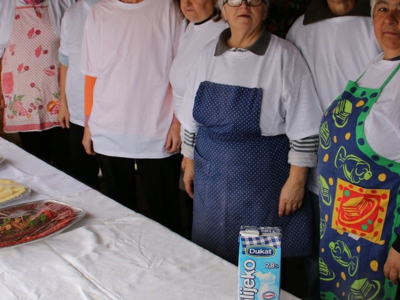 Vrijedne domaćice iz Udruge „LIDO“ pripremile su ujutro u tradicionalno ukrašenoj kuhinji prvu jutarnju kavu i kuhanu rakiju kojom su rabotari prije početka posla nazdravili, a također je stigao tradicionalni doručak kojeg mogu degustirati prvi posjetitelji na događanju, a kad ponestane doručka već će biti i drugih slavonskih specijaliteta kao proizvoda ovog kolinja.