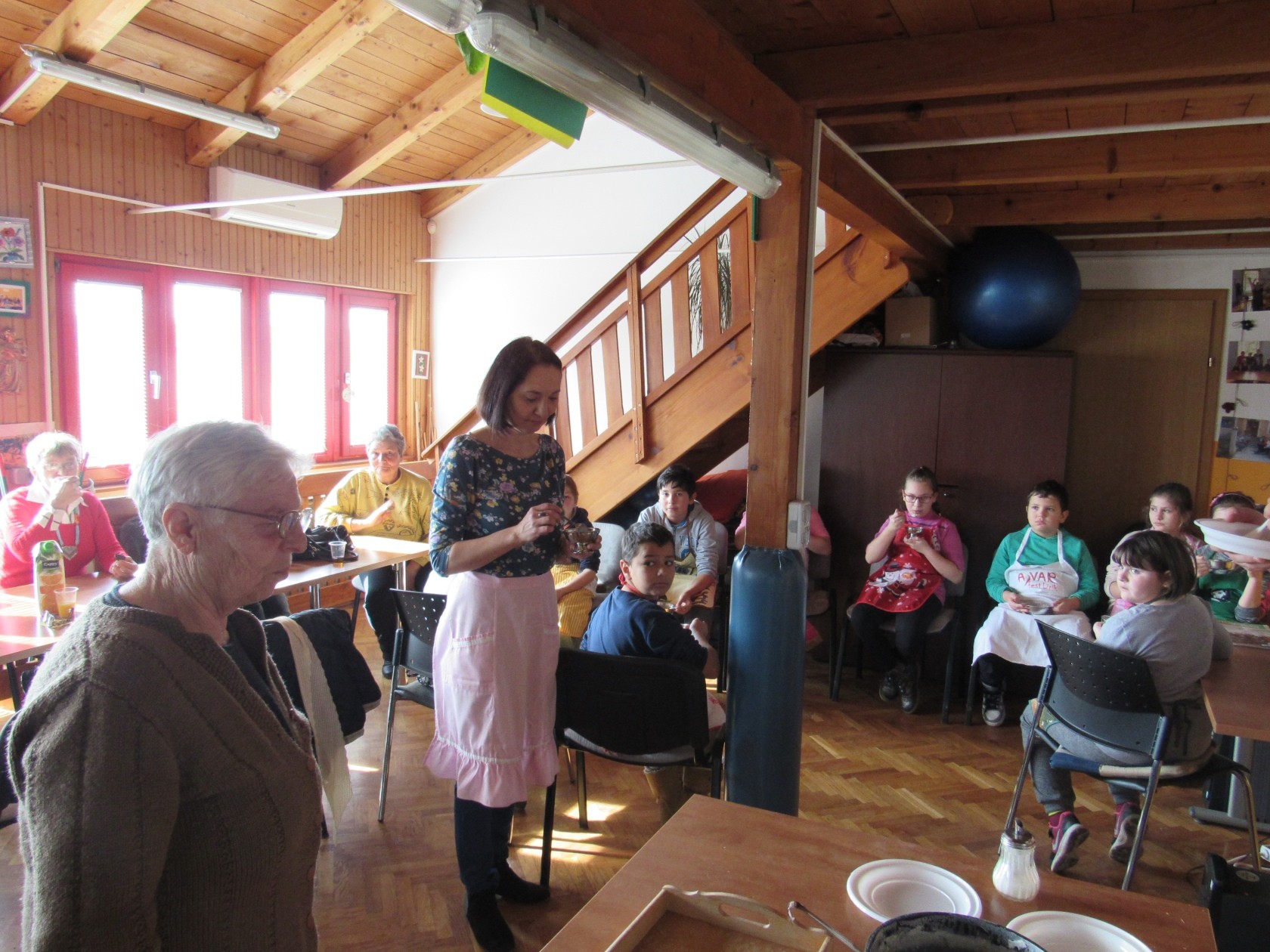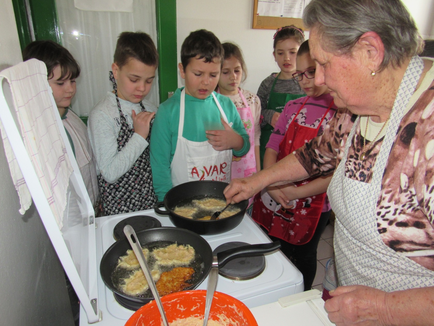 Zlata Kranjčić i Olgica Vidaković prenijeli su malim kuharima iz 4.a razreda recepte za „taranu na mlijeku“ i „palačinke od krumpira“. Potom su svi zajedno uz pomoć razrednice Zorice Novokmet i gerontodomaćica Danijele Bojanić i Tanje Adžijević prvo pripremili „taranu na mlijeku“, a nakon degustacije i drugi specijalitet „palačinke od krumpira“.