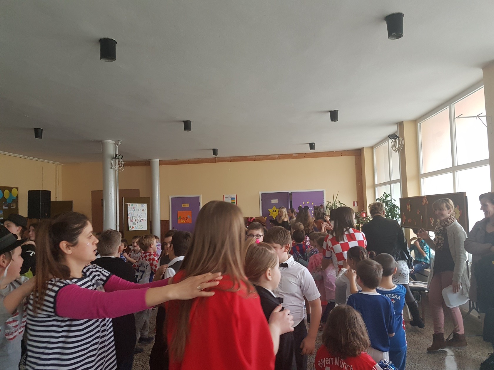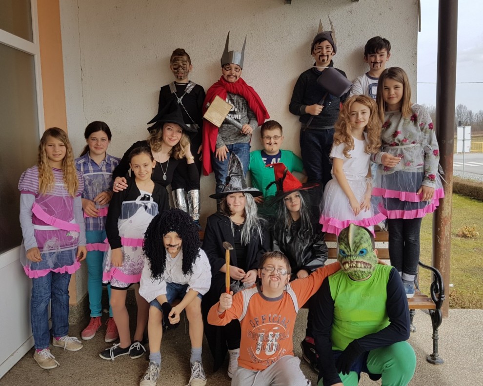 Pod maske su se sakrili učenici svih razreda od prvog do osmog sa svojim razrednicima te se razveselili uz pjesmu i ples, a kratkim nastupim svaki razred predstavio se ostalima. Cijeli program kao meštar ceremonije zadužen za tehničku podršku vodio je učitelj Ivan Kiš.