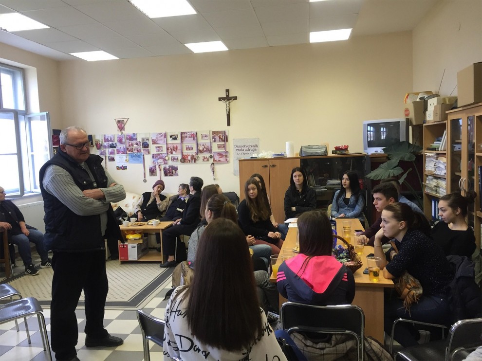 Gostoljubivi članovi spomenute udruge dočekali su buduće zdravstvene djelatnike s nastavnicama zdravstvenog aktiva Vesnom Božić i Anom Tidlačko pred svojim vratima. Nakon kratkih informacija o radu udruge i njihovim aktivnostima, učenici su se okušali u igri pikada, ali s povojem na očima. Da zadatak nije bio nimalo lagan, posvjedočilo je nekoliko učenika koji su se odvažili ovom zanimljivom pothvatu. Nakon toga je uslijedio glazbeno – dramski program koji je započeo glazbenim točkama Valentine Begić i Marka Johovića, koji su prenijeli poruke skladbama „Ne dirajte mi ravnicu“ i „Cesarica“, a učenici Ivana Bogunović, Antonela Malina i Toni Božić izveli su predstavu prigodne tematike odnosno kako izraziti ljubav na razne načine, a nakon nje su im uručili unikatne poklone.