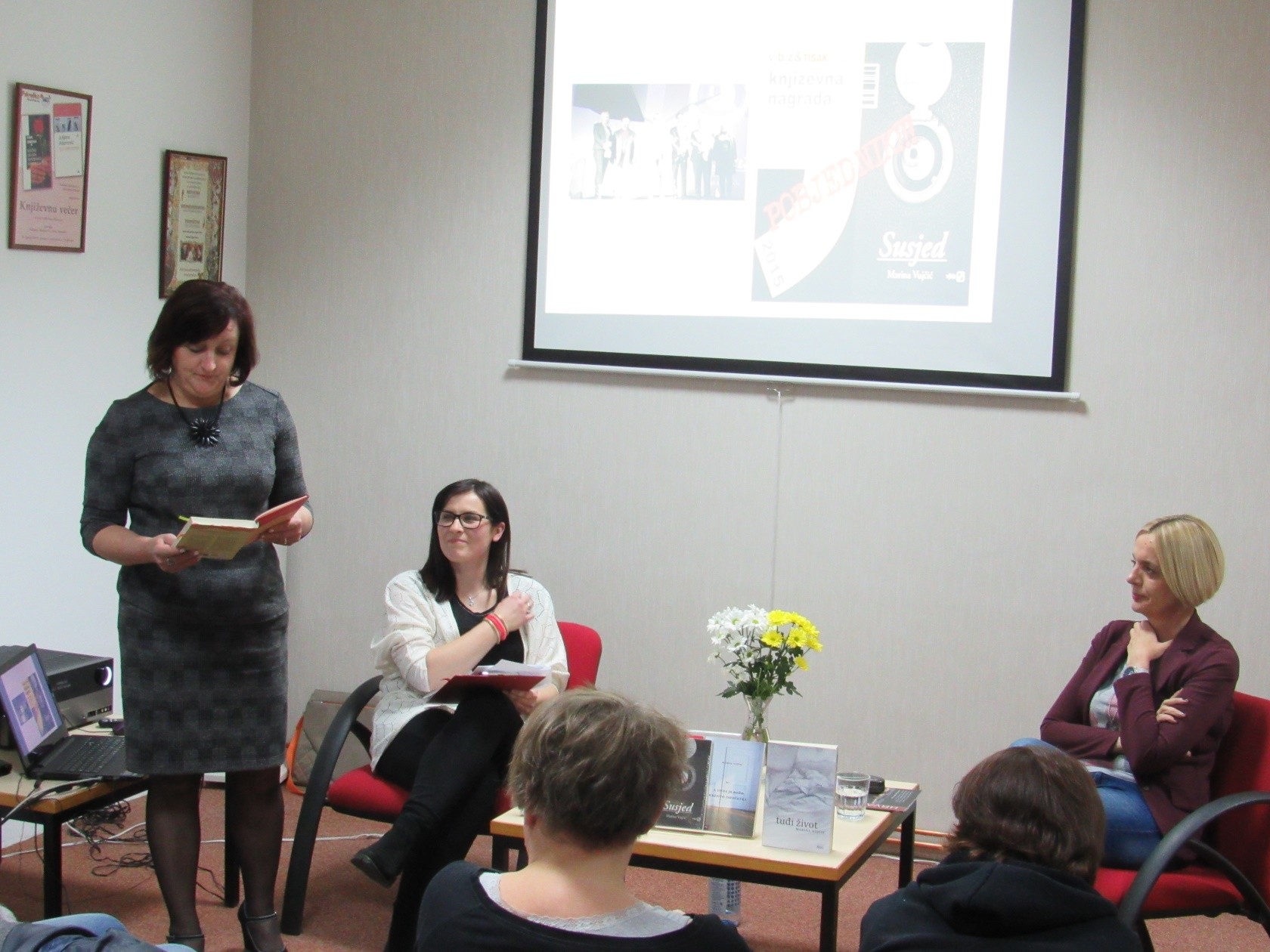 Na kraju književna večer završila je izvlačenjem sretnog dobitnika iz publike koji je dobio roman „Susjed“, a ruka autorice iz košarice je izvukla ime Davorke Pleša te potom sretnoj dobitnici uručila njenu nagradu i potpisala.