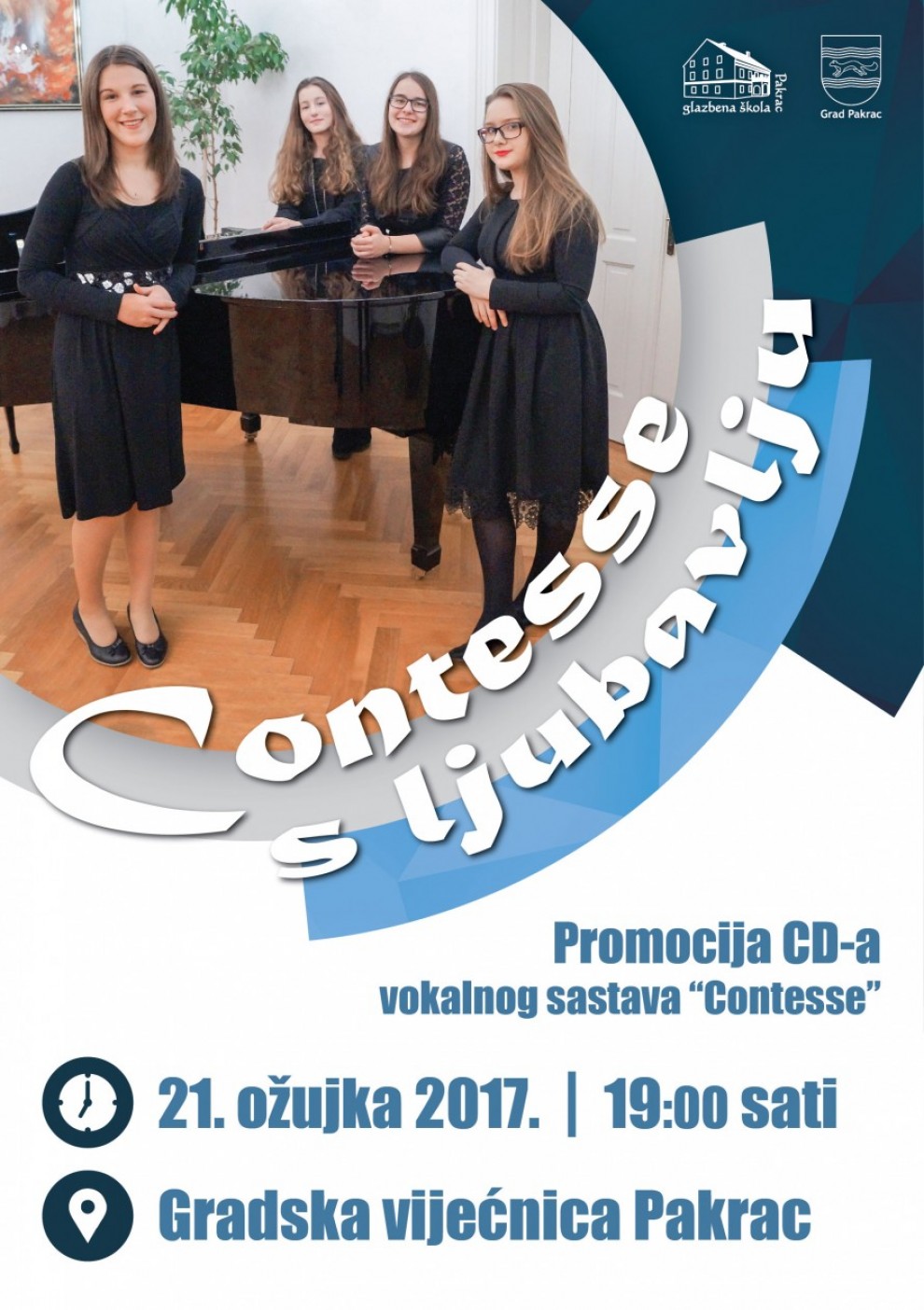 U utorak 21. ožujka u gradskoj vijećnici kompleksa Janković s početkom u 19 sati održat će se promocija CD-a vokalnog sastava Contesse koji čine izuzetno mlade i talentirane glazbenice ponikle u Osnovnoj glazbenoj školi Pakrac; Kristina Zednik (15), Marta Filipović (15), Ana Kobetić (14) i Sara Komljenović (13). Ovim događajem ujedno se i završava program u prigodi obilježavanja Dana Grada Pakraca.