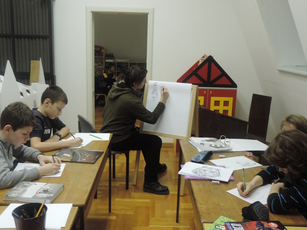 Radionica održana 21. siječnja 2015. u Muzeju Grada Pakraca okupila je 14 osnovnoškolaca kojima je Pakračanin Hrvoje Šebić prenio male tajne nastanka i crtanja stripova.