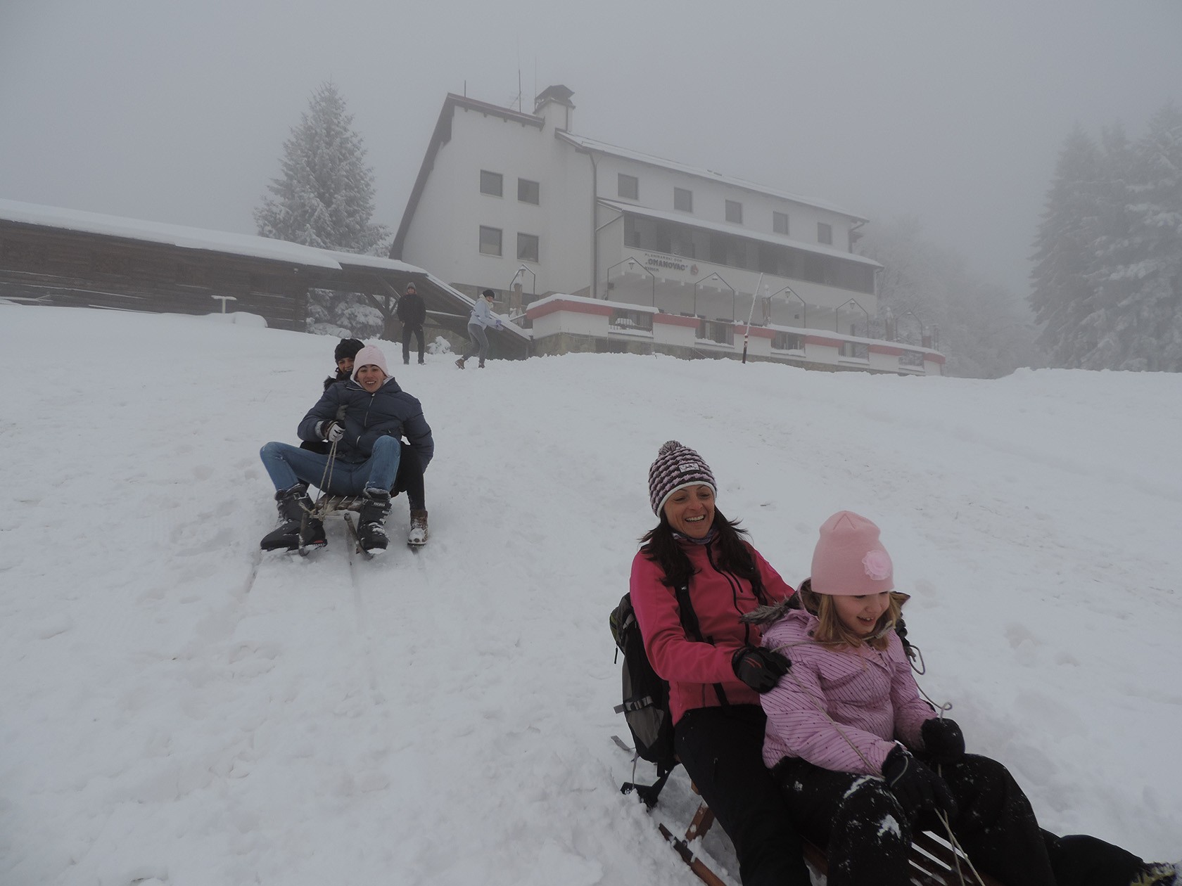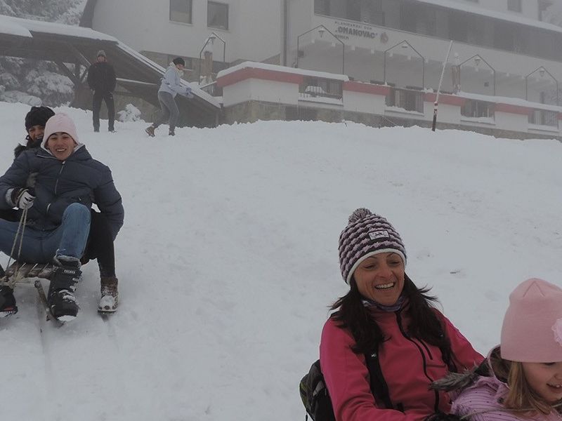 Osim skijaša i boardera koji su se spuštali po skijaškoj stazi bilo je i sanjkača, uglavnom roditelji koji su doveli djecu na sanjkanje. Oni su se spuštali na sanjkalištu netom ispod terase planinarskog doma koje je također pripremljeno ratrakom.