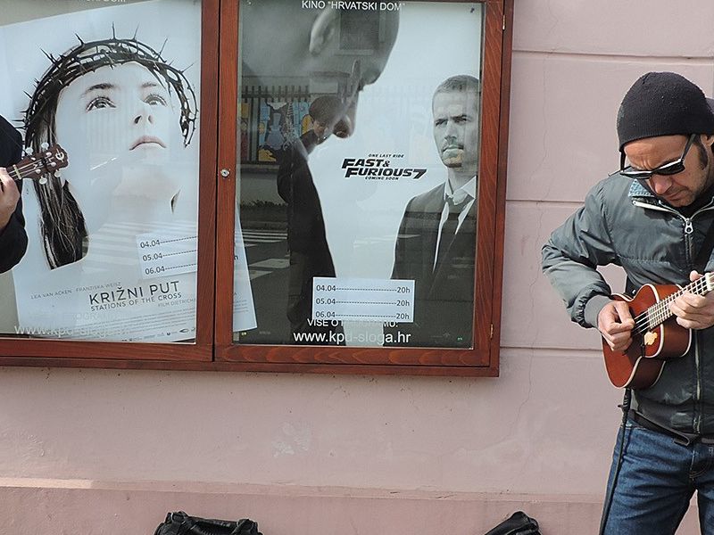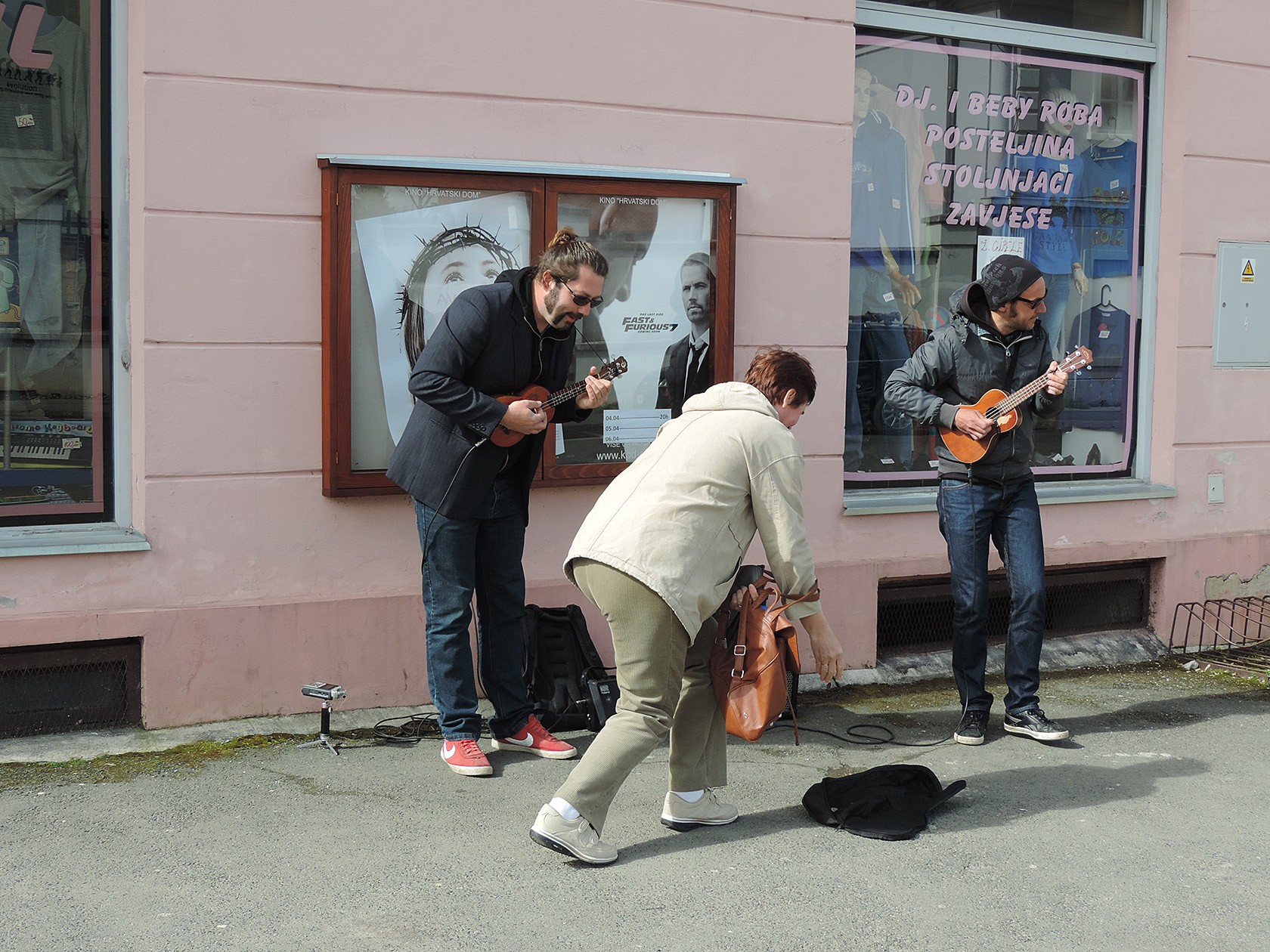 Buku prometana, zvonjavu mobitela i glasne ulične razgovore na Trgu bana Josipa Jelačića u Pakracu jutros 2. travnja tijekom sat vremena nadglasali su dva egzotična instrumenta privlačeći pažnju prolaznika.