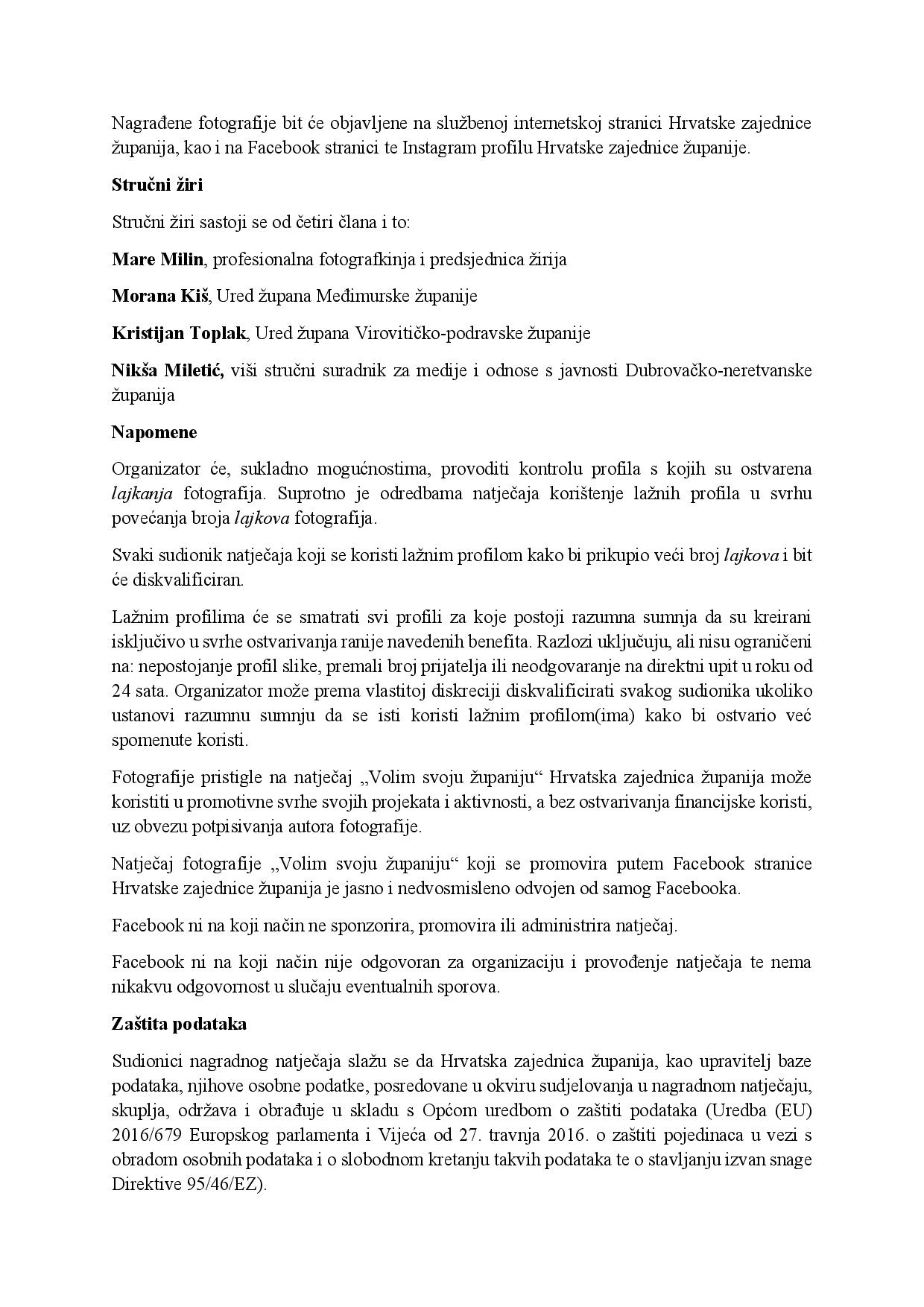 Pozivaju se svi kreativci da prijave svoje najbolje fotografije koje uključuju zanimljivosti - ljude, životinje, znamenitosti, skrivene detalje pojedinih županija - u kombinaciji s prirodnim ljepotama, kulturnom i prirodnom baštinom s područja svih županija u Republici Hrvatskoj.