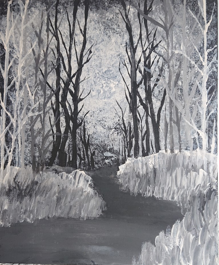 Najčešći motivi su priroda i pejzaži, kaže kako se okušala i u portretima, ali priznaje da joj je naporno slikati ljude. Omiljeni slikar joj je Vincent Van Gogh, a najveća inspiracija Bob Ross čije Youtube epizode guta i u njima pronalazi prekrasne motive koje onda svojom osobnošću i stilom nastoji prenijeti na platno.
