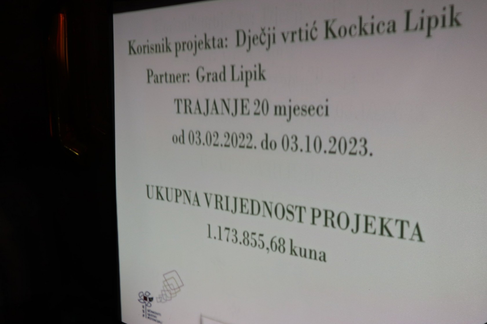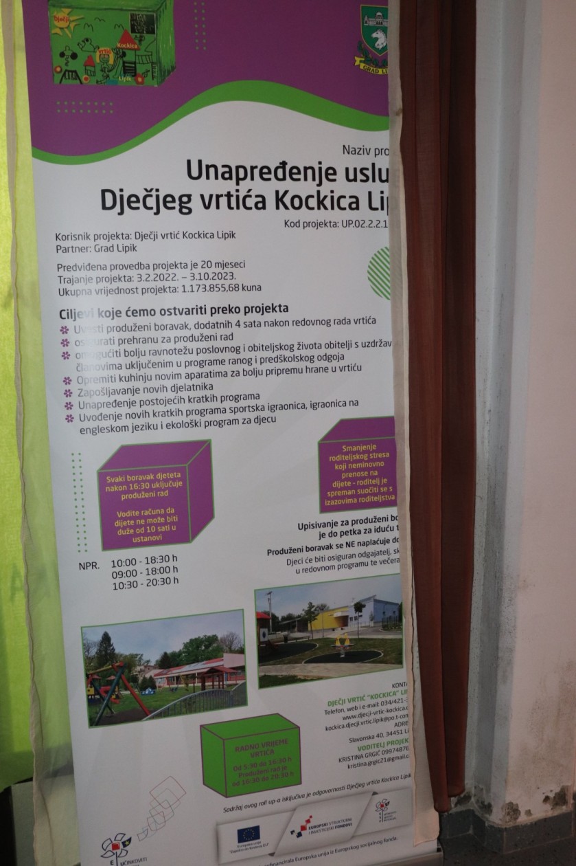 U prostoru restorana na lipičkim bazenima 8. lipnja je održana početna konferencija projekta: "Unaprjeđenje usluge Dječjeg vrtića Kockica Lipik" (Kod projekta UP.02.2.2.16.0129) čiji je korisnik Dječji vrtić "Kockica" Lipik, a partner na projektu Grad Lipik.