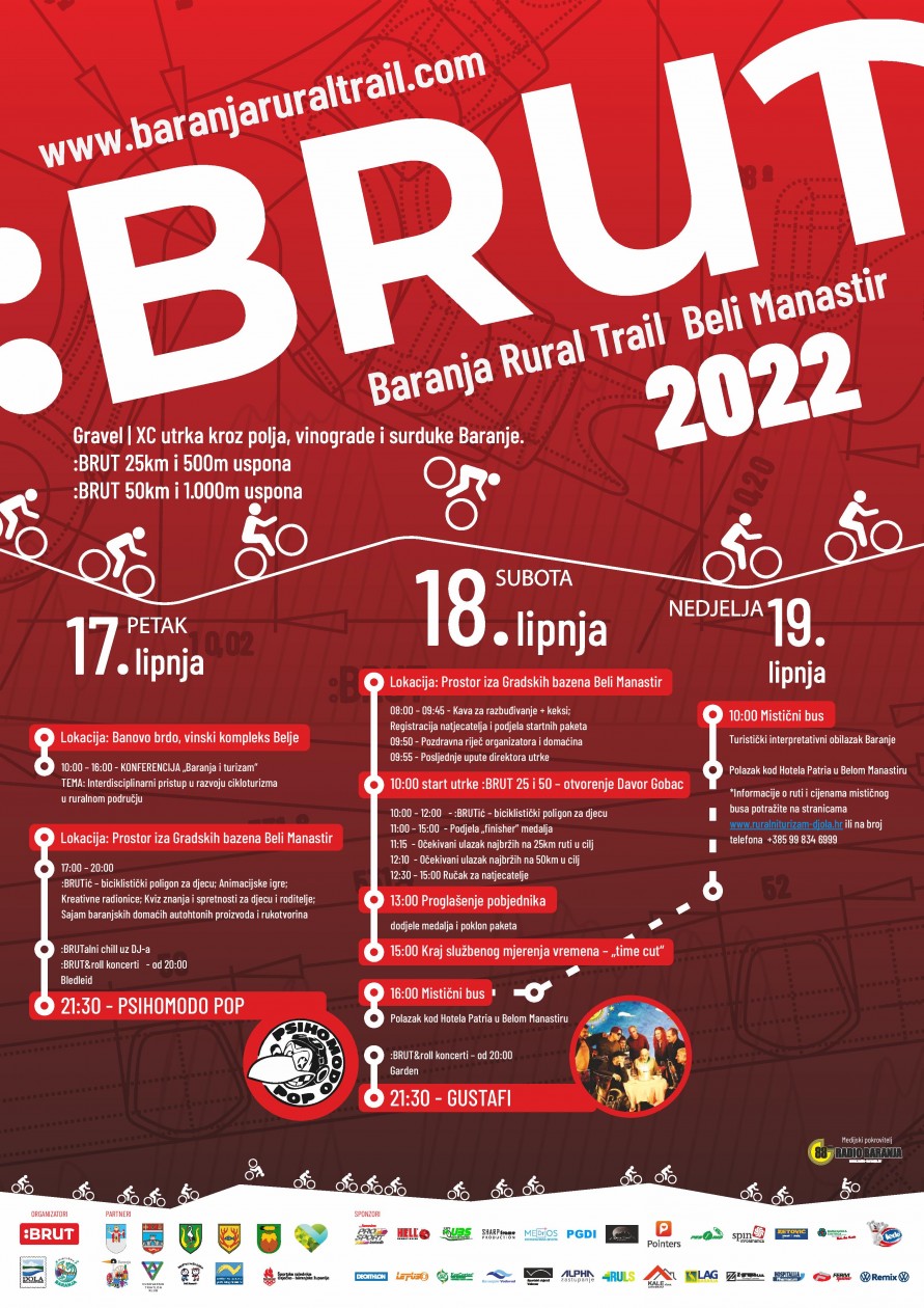 Baranja rural trail – BRUT biciklistička je utrka koja se vozi po prekrasnim poljima Baranje, a organizira ju udruga Baranja i turizam iz Belog Manastira te udruga Đola u suradnji s Vukovarskim triatlon klubom.
