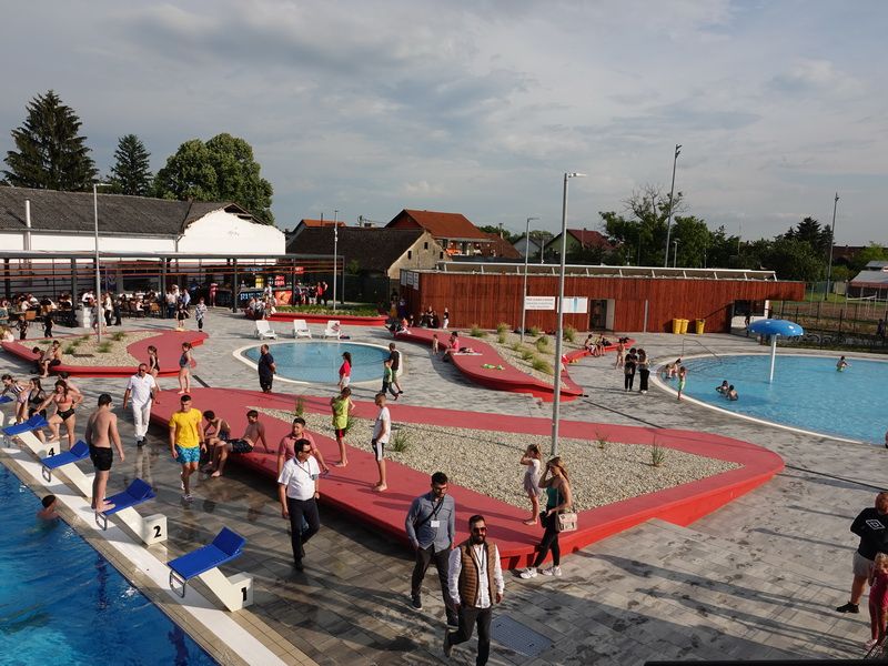 Uz veliki rekreacijski dimenzija 50,61 x 24,42 m, maksimalne dubine do 1.8 metara, tu su još i kružni dječji ukupnog promjera 20,62 m, dubine 85 cm i mali dječji bazen dimenzija 10,76 x7,46 metara maksimalne dubine 40 cm s dječjim popratnim sadržajima. Na raspolaganju vam je i vanjska garderoba, tuševi, sanitarni čvor, mogućnost najma ležaljke, prostor prilagođen invalidima kao i ugostiteljski sadržaji, pa prepreke za potpuni užitak nema.
