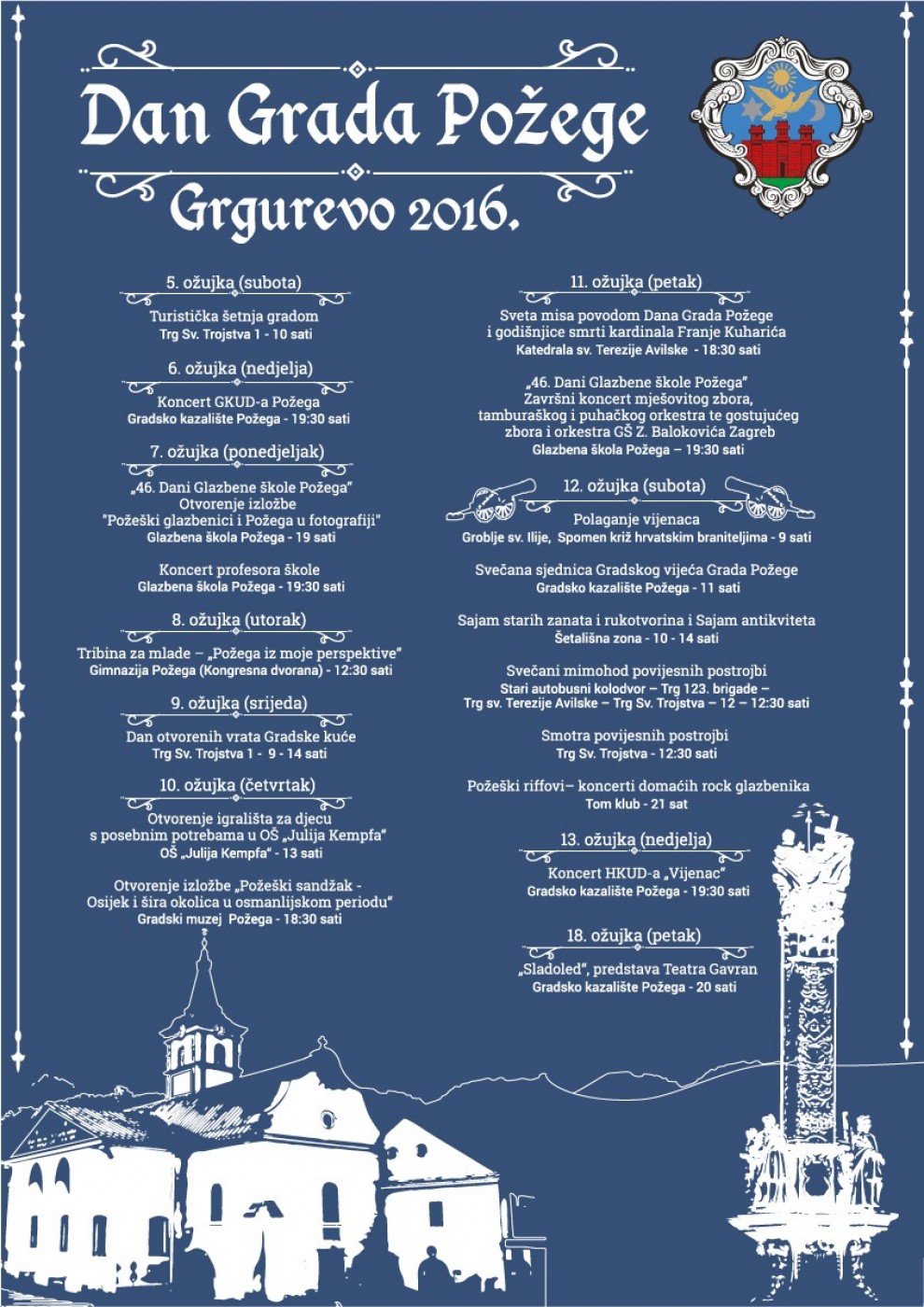Na dan Grada Požege 12. ožujka 2016. godine u jutarnjim satima u Gradskom kazalištu Požega održati će se svečana sjednica Gradskog vijeća Grada Požege.