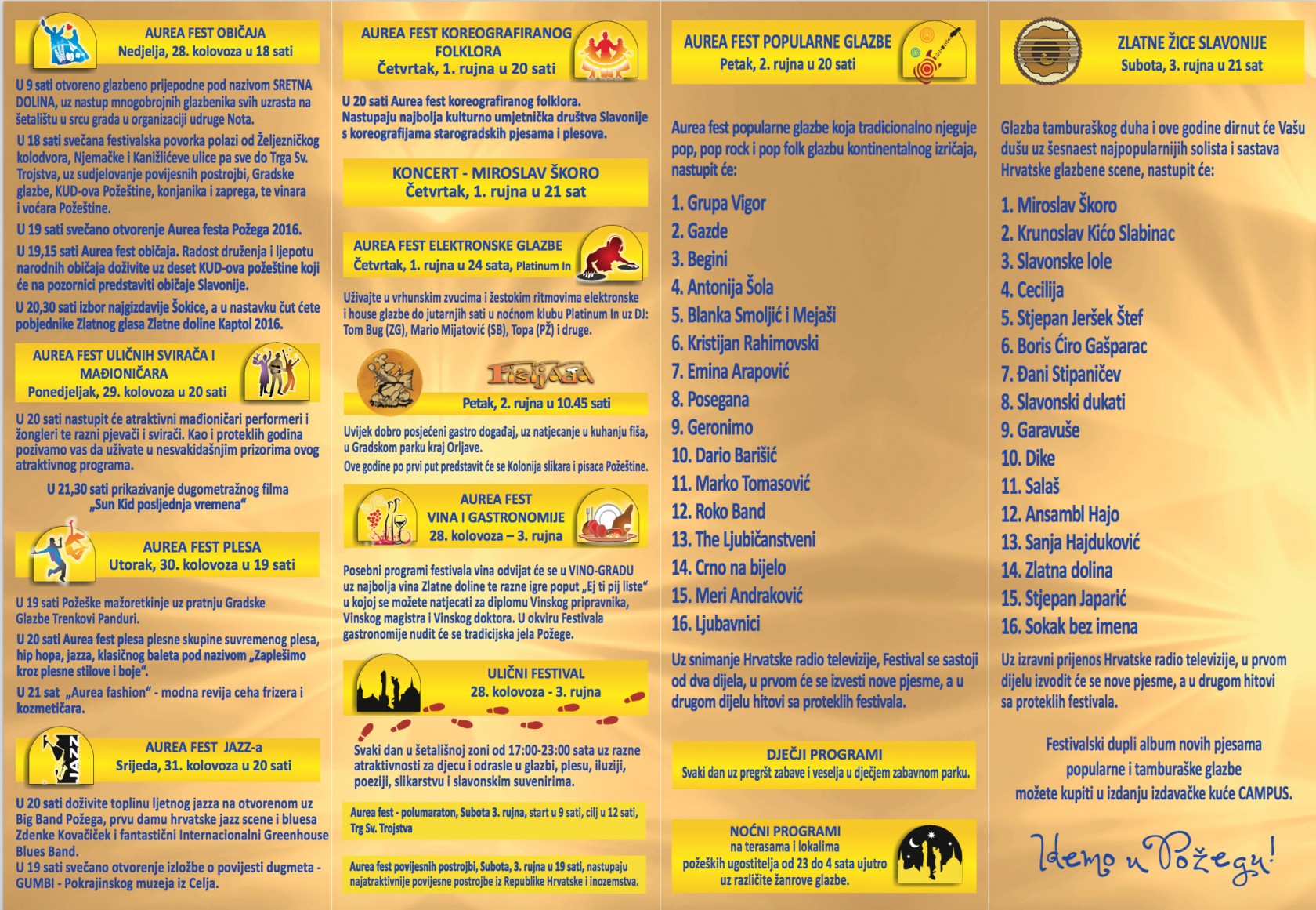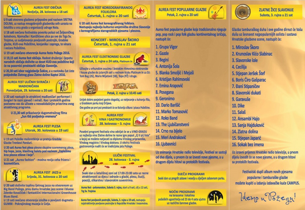 Vidimo se od 28. do 3. rujna u Požegi, na festivalu festivala - Aurea fest Požega 2016.