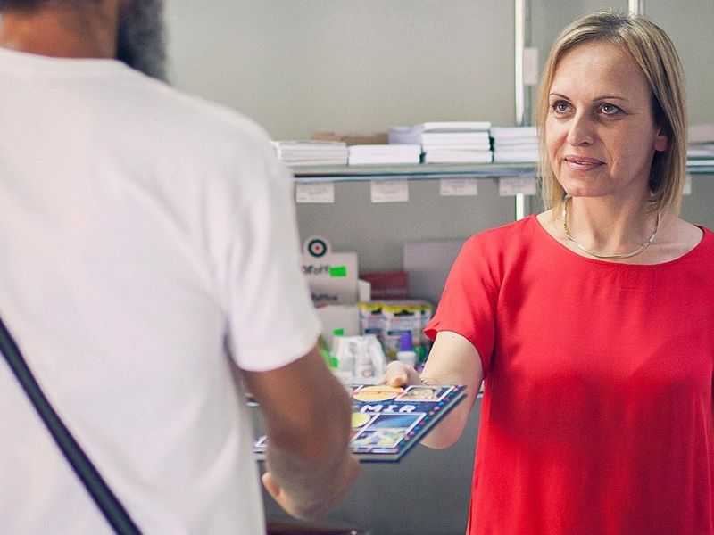 - kupiti razglednice, čestitke, suvenire ili okvire za fotografije,