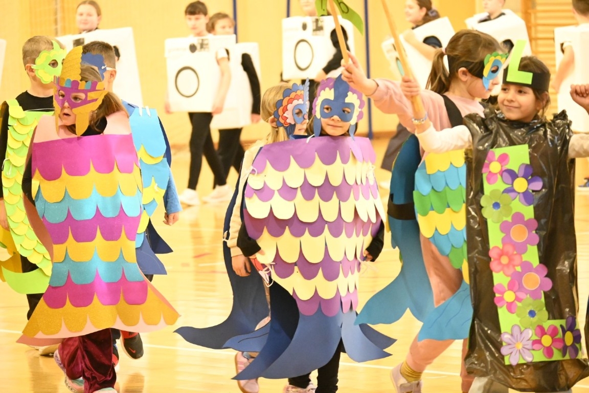 U nazočnosti brojnih roditelja te ostale rodbine na tribinama, više od stotinu djece nižih razreda lipičke škole, zajedno s učenicima Područne škole Dobrovac te petog razreda matične škole, otvorilo je program svečanom maskirnom povorkom uz prepoznatljive taktove pjesme „Maškare, ča mogu maškare“.